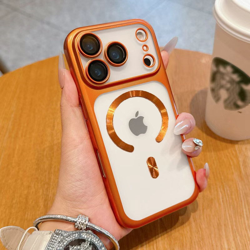适用iphone17promax磁吸手机壳磨砂半透明苹果17pro电镀自带镜头膜16pm网红时尚简约爆款15por全包防摔保护套