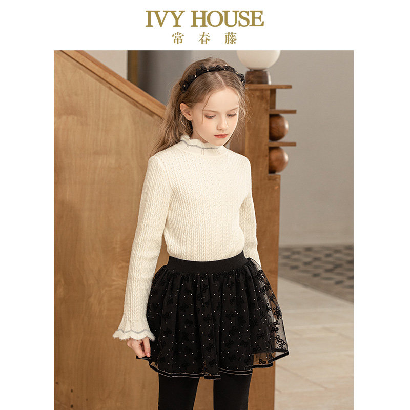 IVY HOUSE常春藤儿童装女童冬季 提花半高领甜美打底衫毛衣亲子装