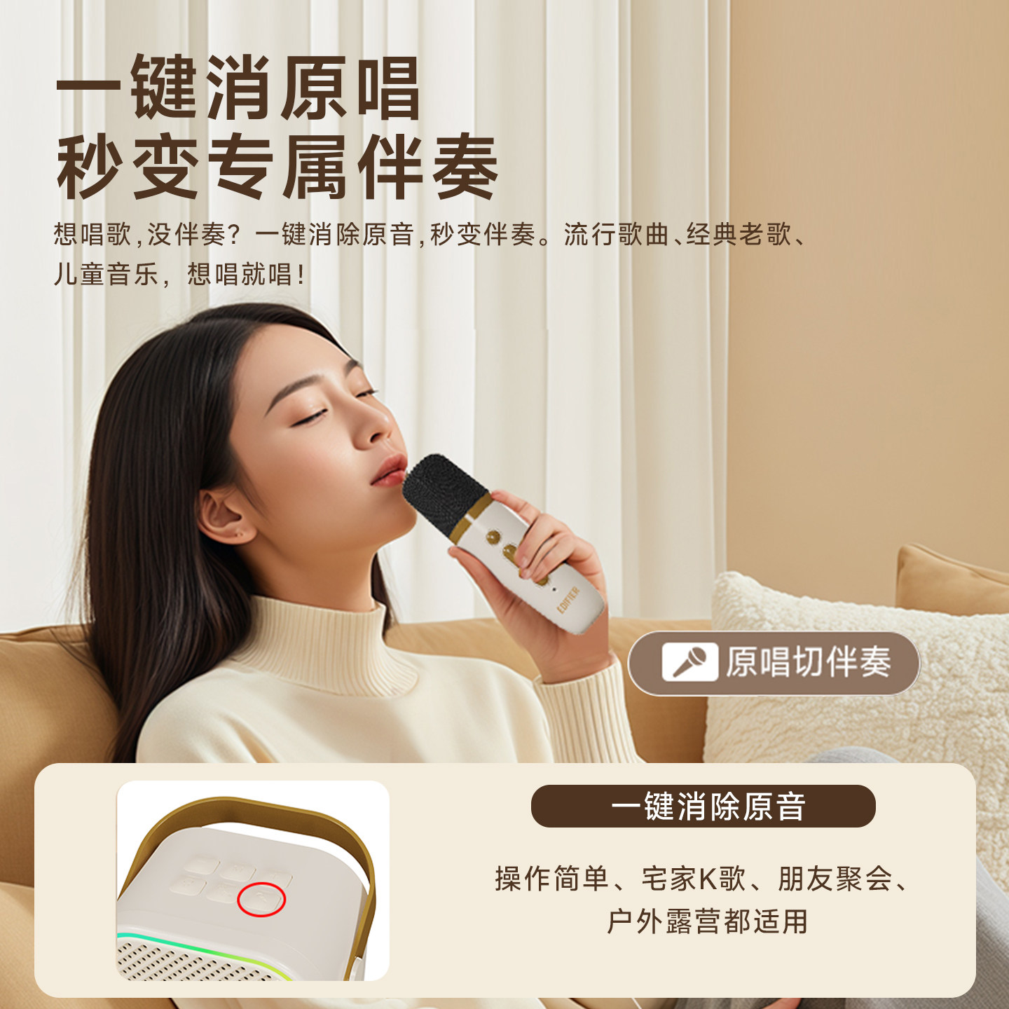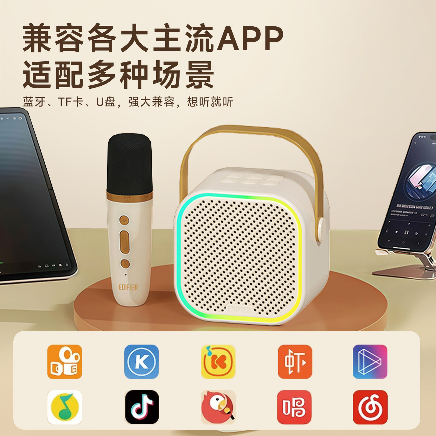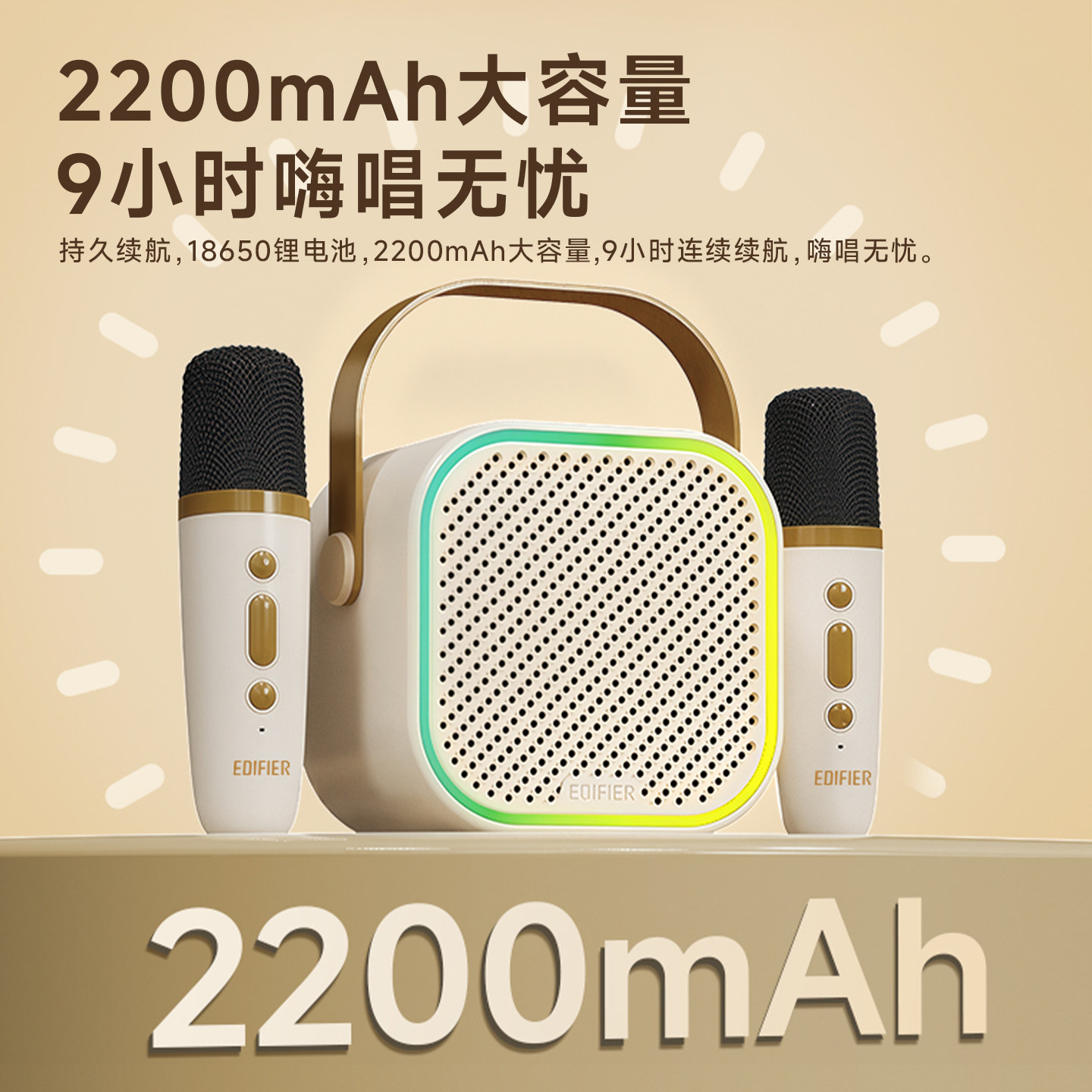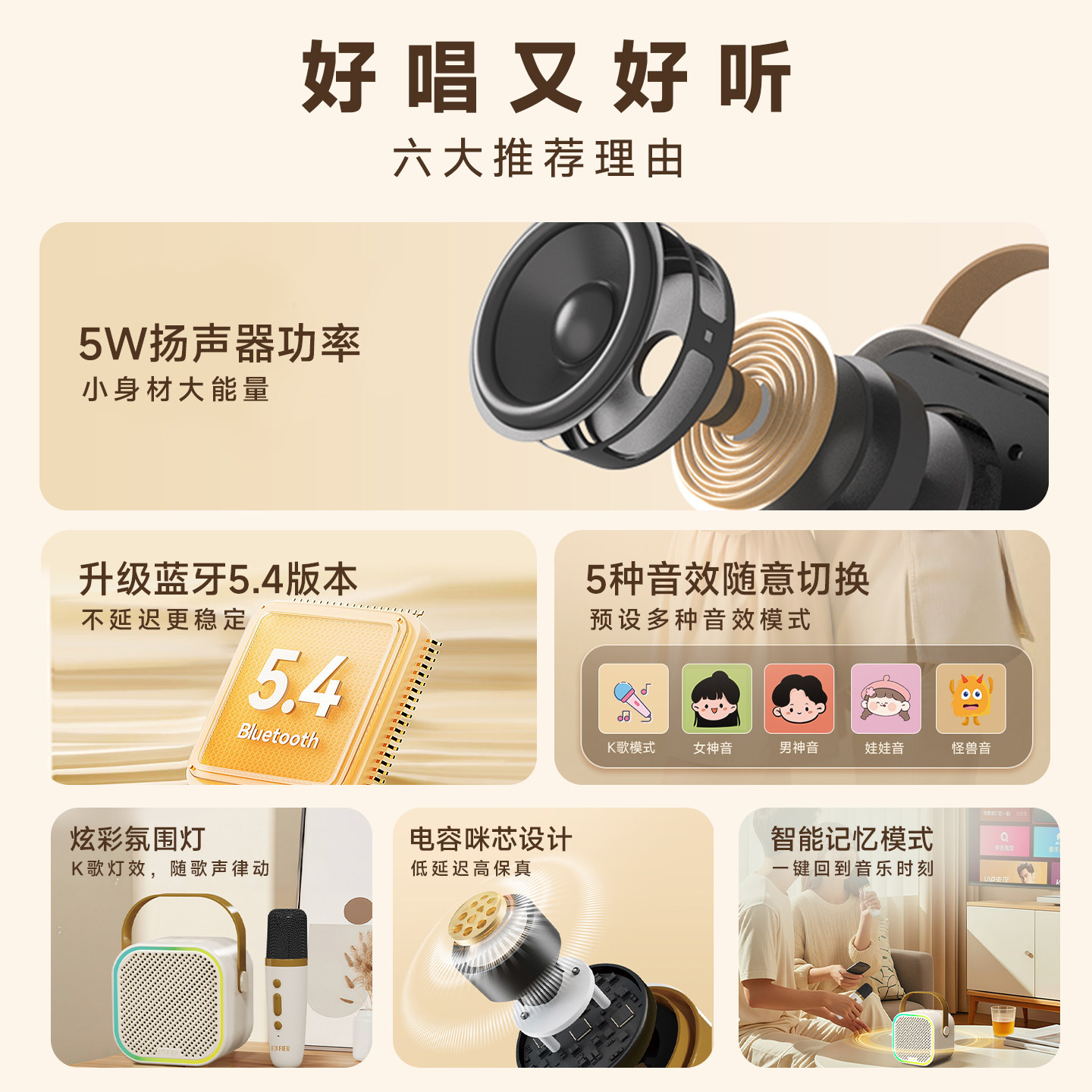 漫步者K歌精灵Q1蓝牙音响话筒一体麦克风儿童家用音箱唱歌无线ktv