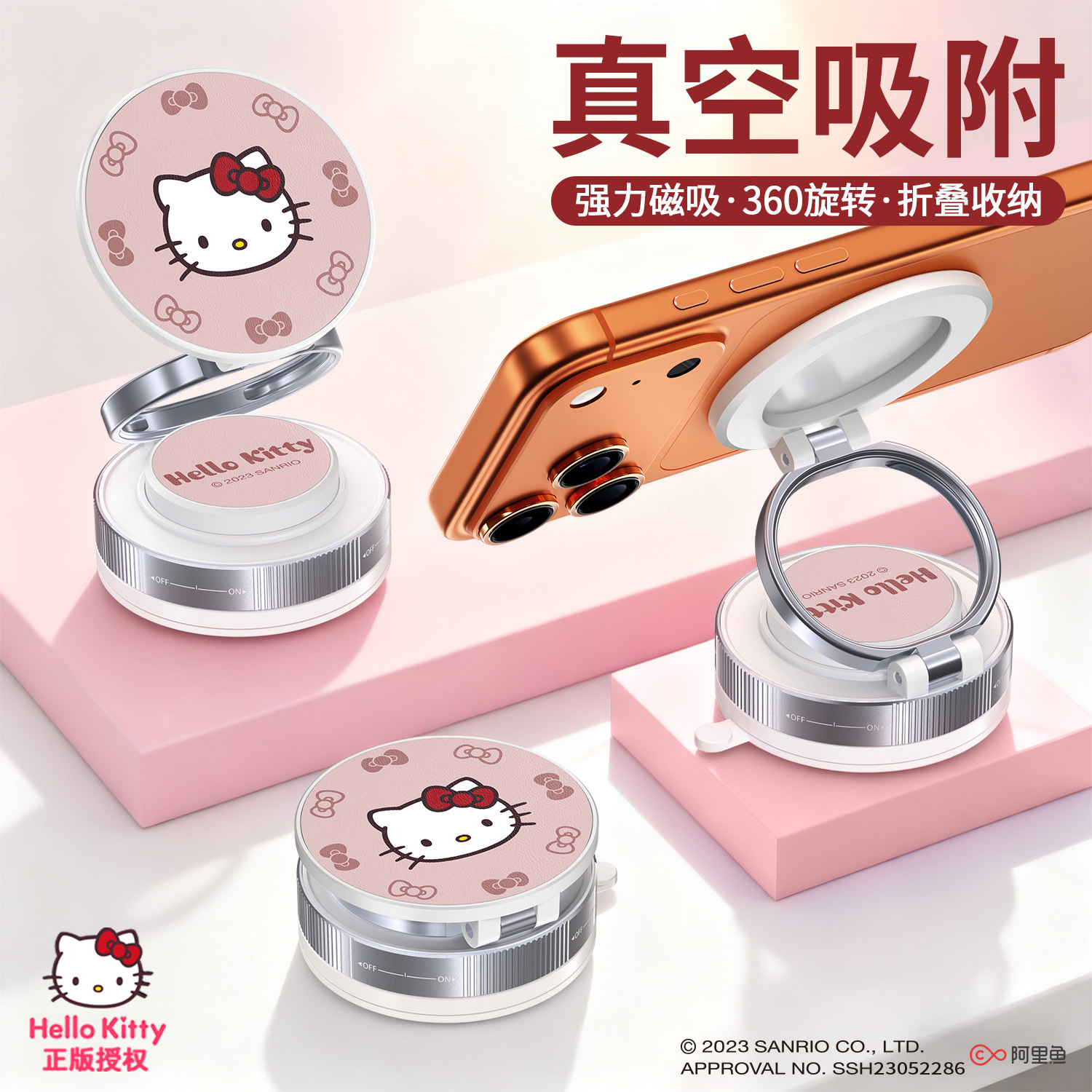 HelloKitty磁吸车载手机支架2025新款真空吸附汽车上专用吸盘车内导航手机架旋转便捷折叠多功能通用支撑固定