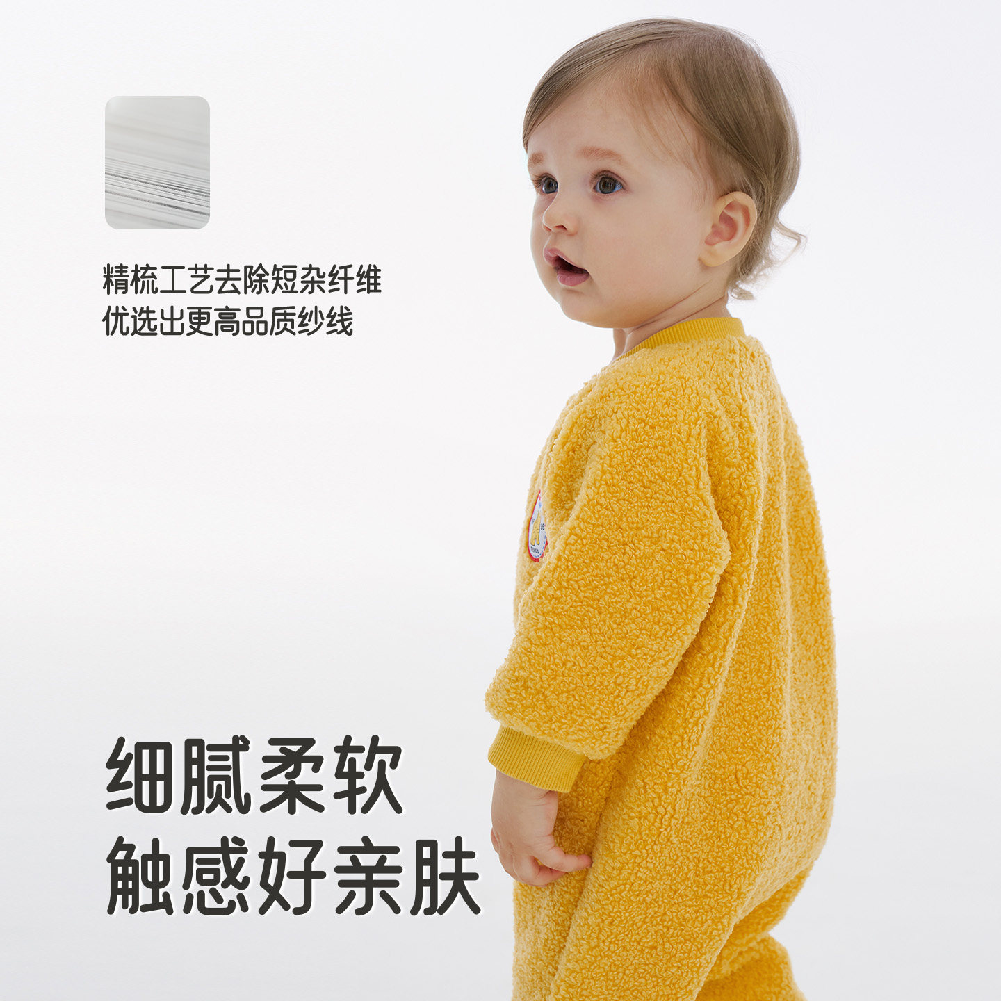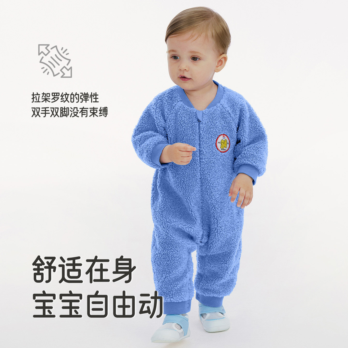 婧麒婴儿衣服秋冬德绒连体衣男女宝宝发热保暖新生儿打底睡衣冬款