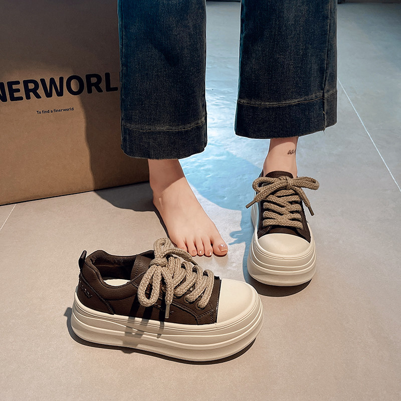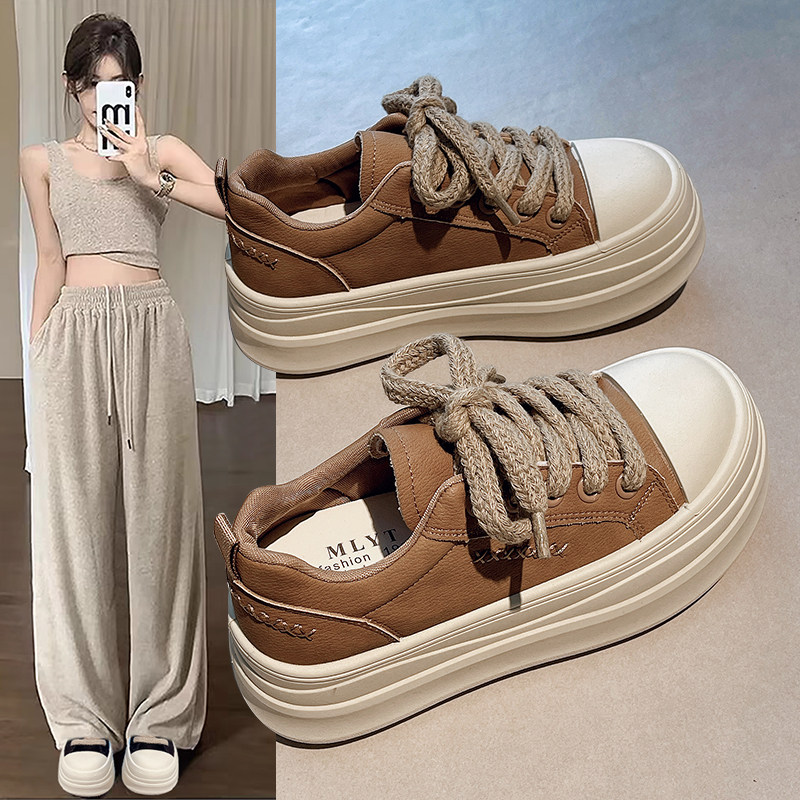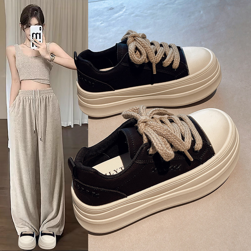 他她女孩厚底松糕板鞋女2025秋冬季新款小个子增高女鞋配阔腿裤的