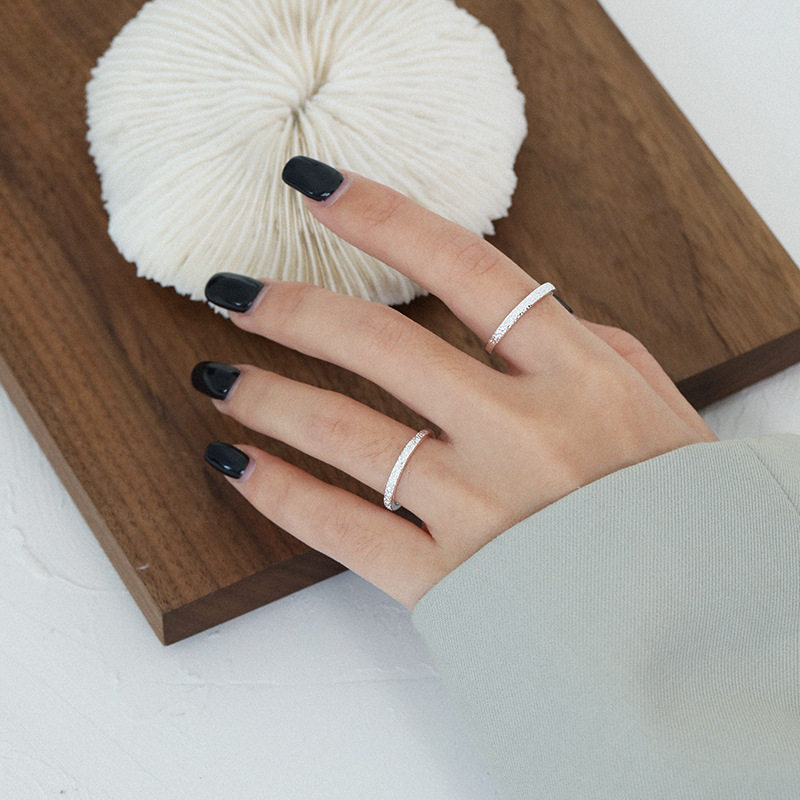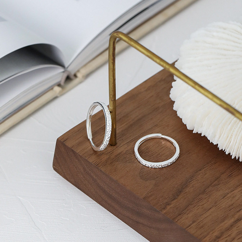 足银S999碎冰冰闭口戒指女轻奢高级感爆闪纯银指环情侣对戒尾戒