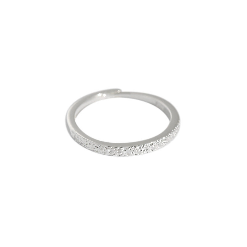 091纯银S925韩版情侣戒指简约个性石纹磨砂面男女对戒学生银饰品