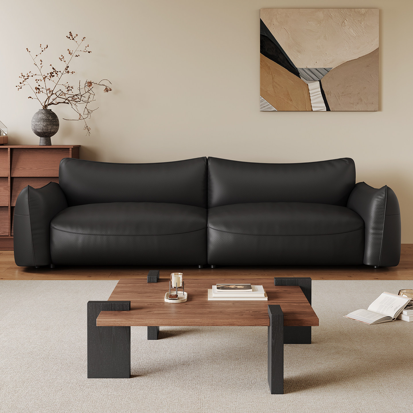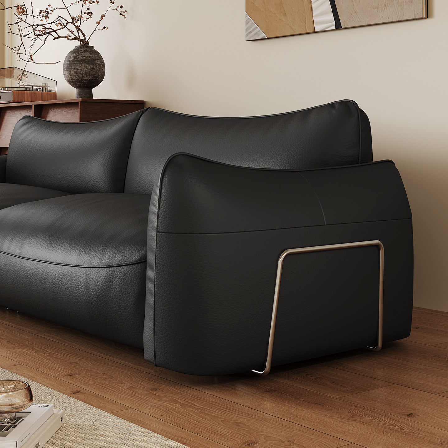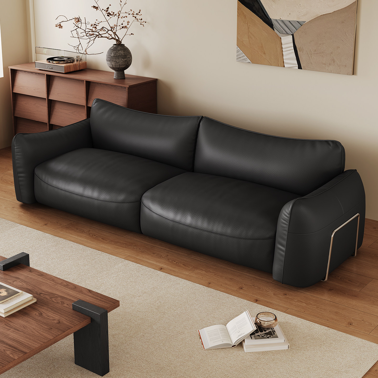 舒梵银河沙发/黑色纳帕厚牛皮沙发/中古包豪斯北欧极简直排小户型