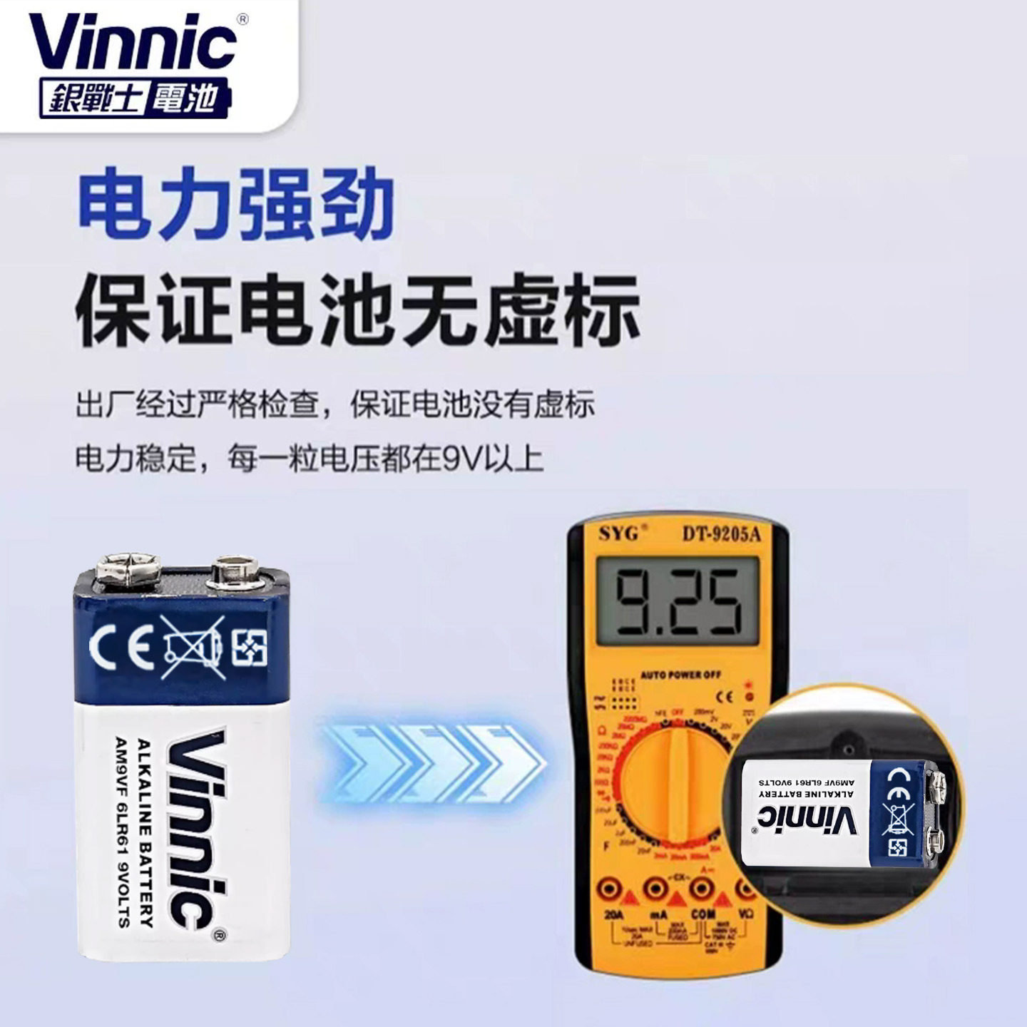Vinnic松柏9V万用表无线麦克风额温枪检测仪碱性方块6LR61电池