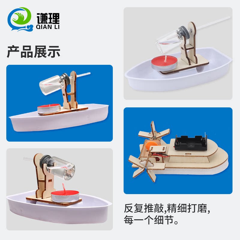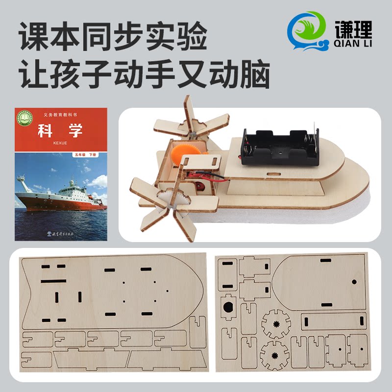五年级下册科学实验自制动力小船diy材料包制作蒸汽船明轮船风力船模型电动小轮船小学拼接手工船的材料实木