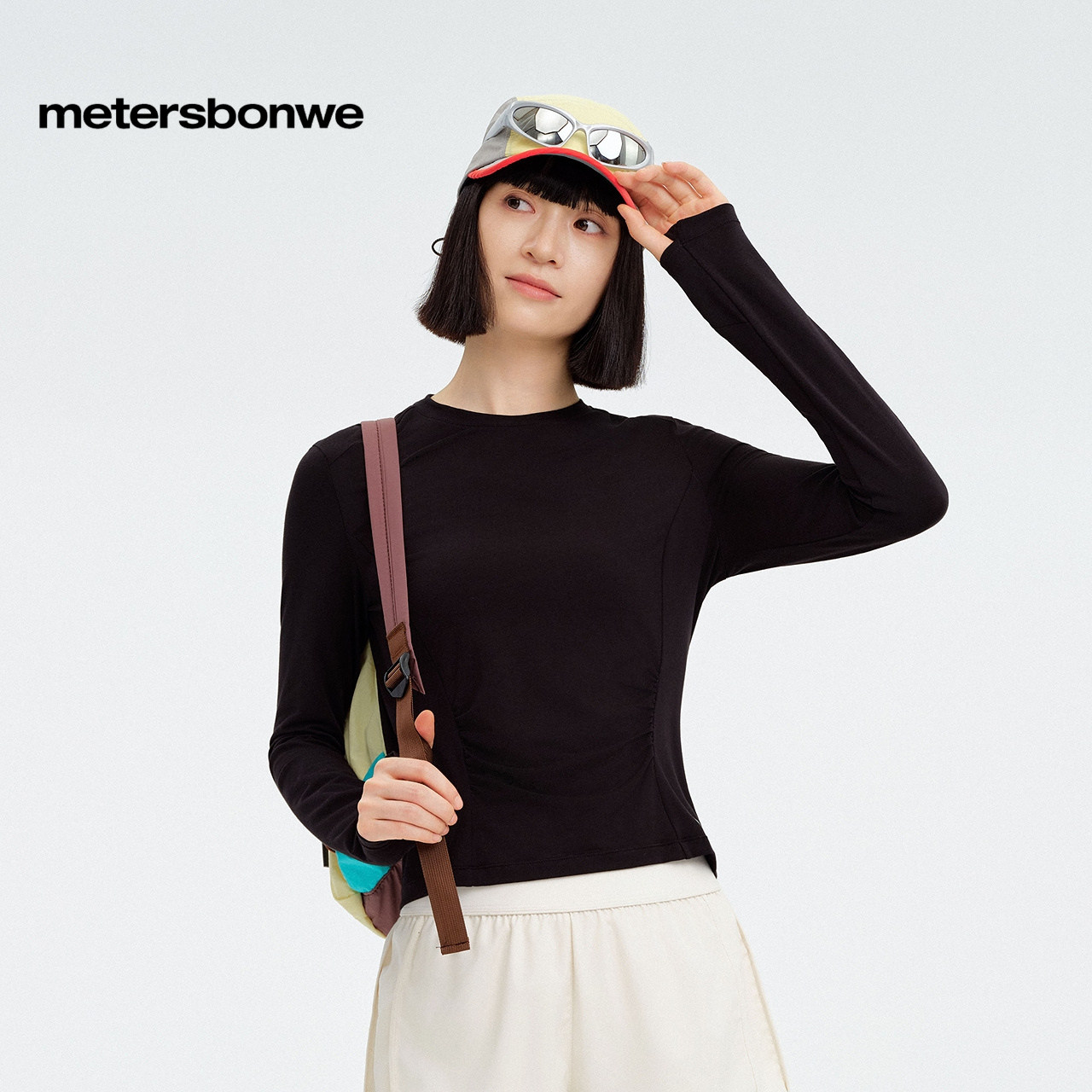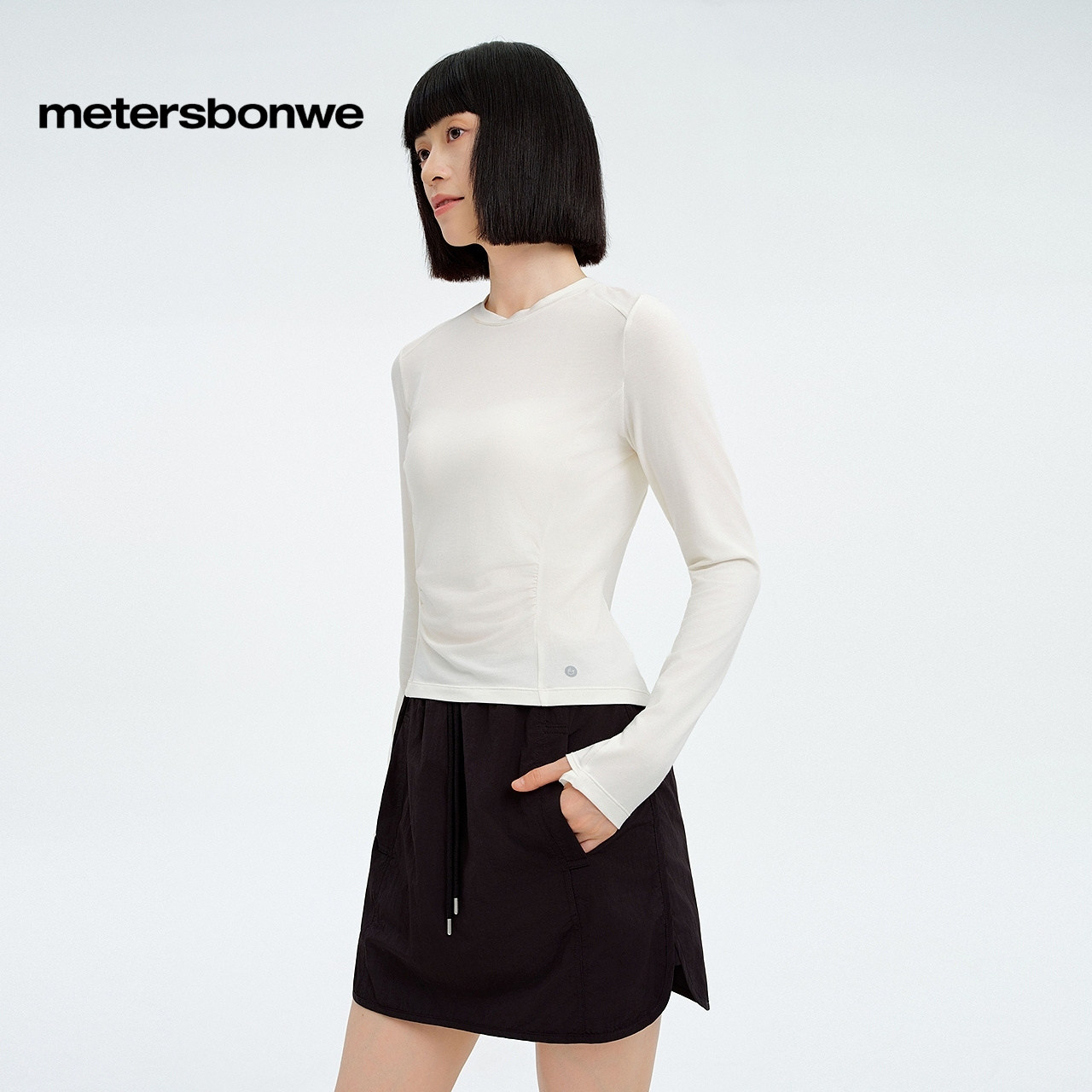 美特斯邦威T恤女25秋冬新款高弹莫代尔长袖恤纯色简约内搭上衣女