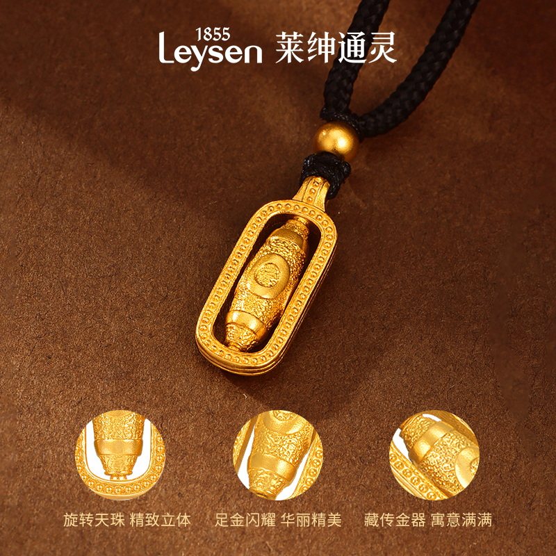 【计价金】莱绅通灵梵光系列 天珠 足金黄金吊坠 金重多退少补
