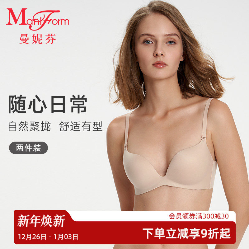2件装曼妮芬无钢圈文胸女内衣聚拢稳定舒适小胸
