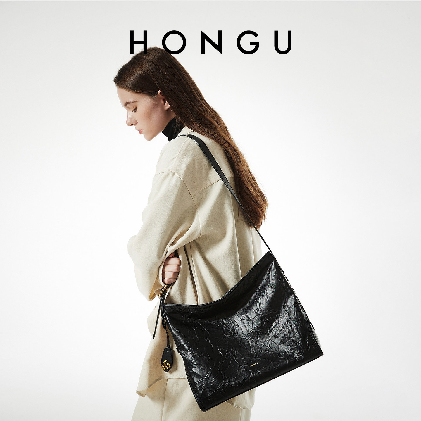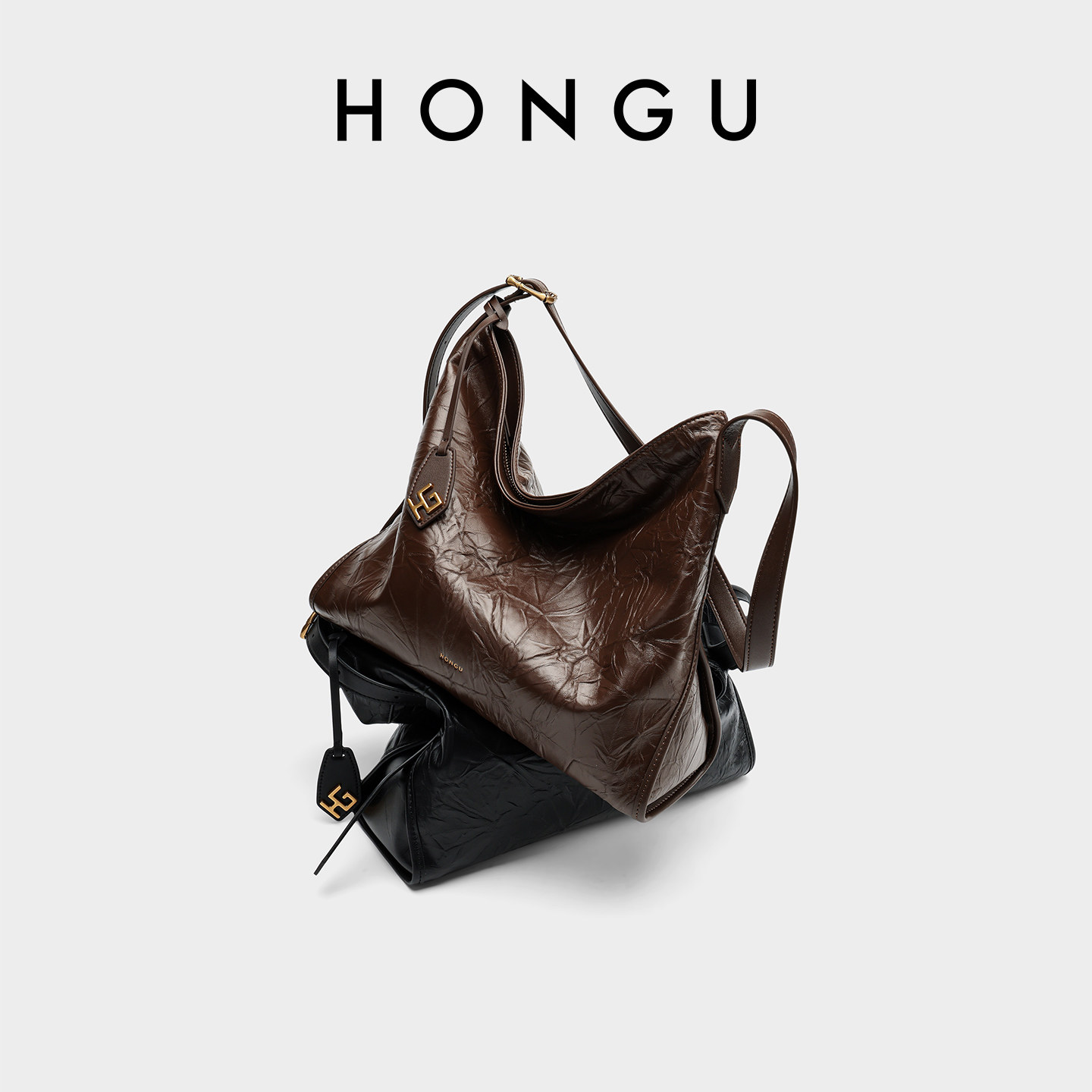 红谷包包女2026新款油蜡皮腋下包时尚大容量单肩斜挎包真皮女士包