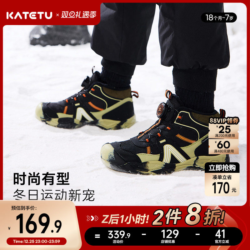 卡特兔童鞋户外儿童运动鞋2025秋冬新款防滑透气加绒保暖儿童棉鞋