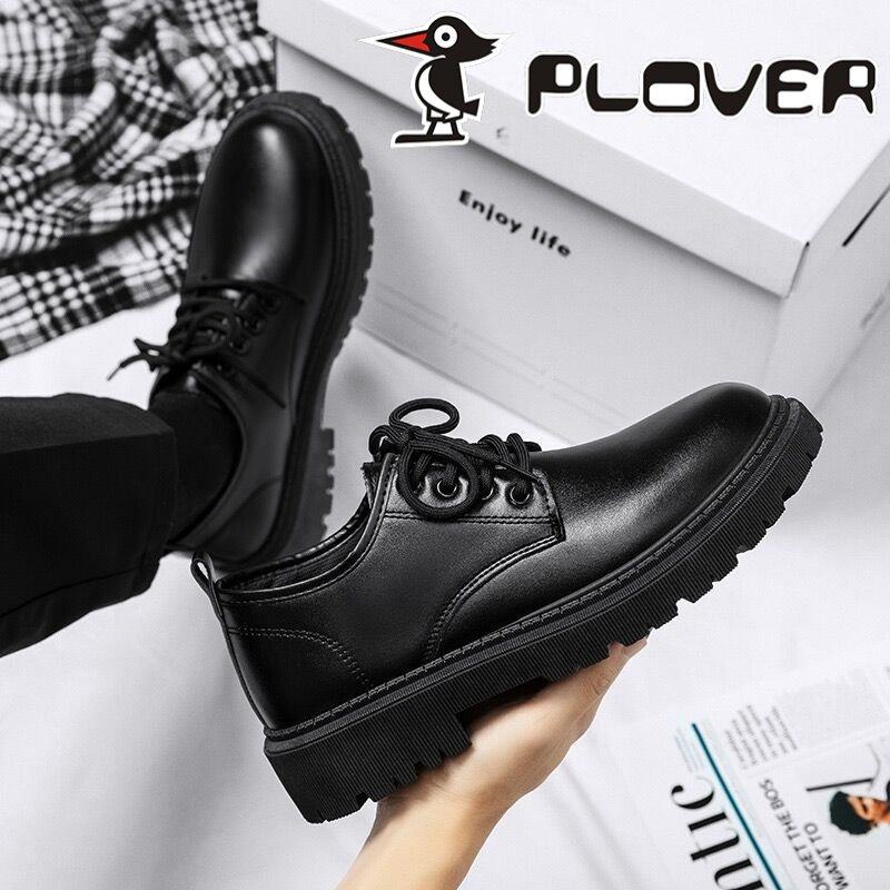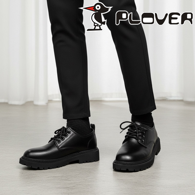 啄木鸟男鞋黑色厚底休闲皮鞋男款通勤百搭英伦风青年系带单鞋2026