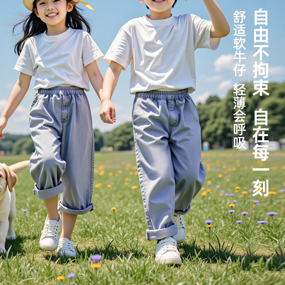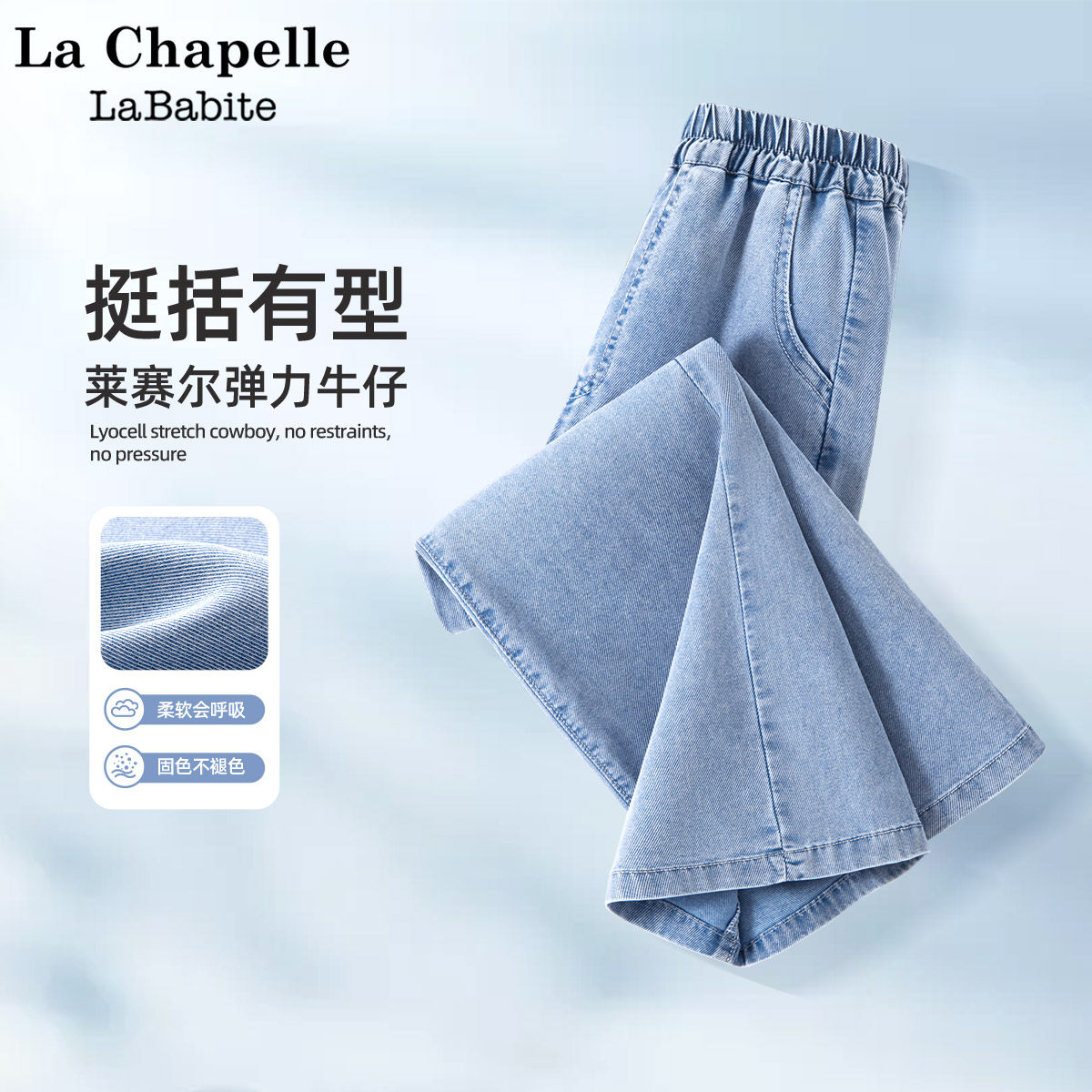 拉夏贝尔联名女童天丝牛仔裤夏季薄款裤子2025新款夏装儿童阔腿裤