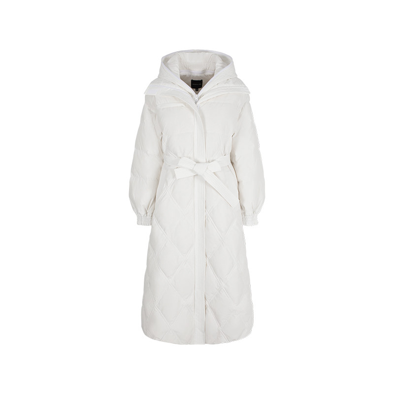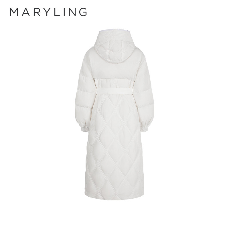 MARYLING玛俪琳冬季新品白色长款连帽羽绒服A1EHW98090