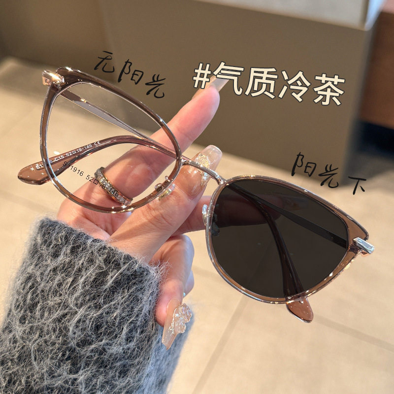 欧美复古猫眼框变色近视镜女士可配有度数镜片平光镜小框眼睛镜架