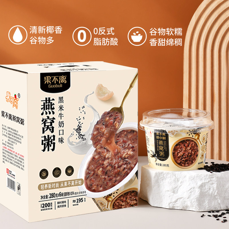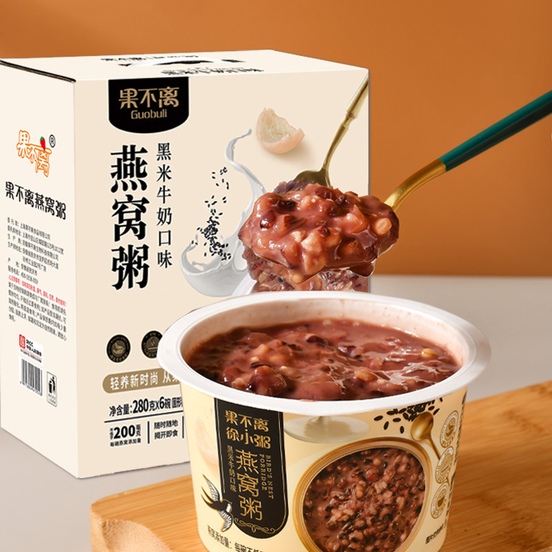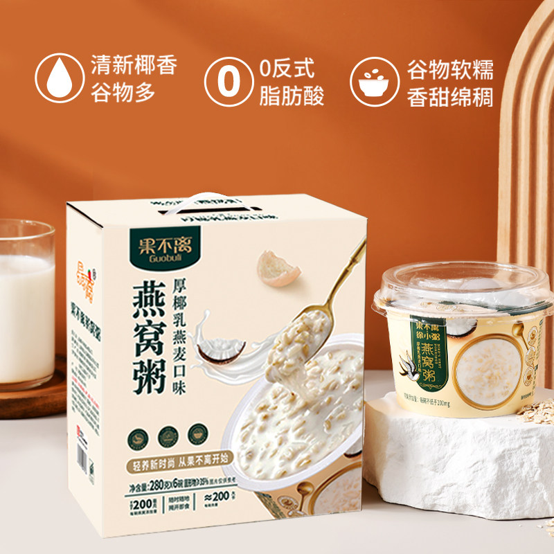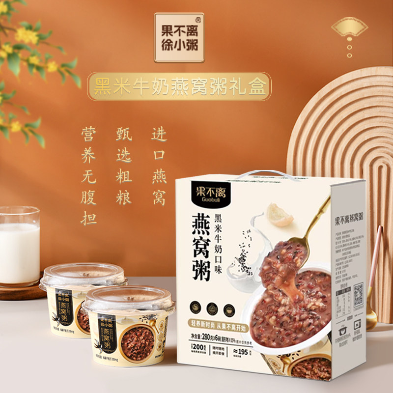果不离徐小粥燕窝粥礼盒装厚椰乳燕麦黑米牛奶代餐速食粥280g*6杯