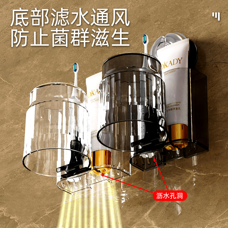 轻奢牙刷置物架免打孔家用刷牙漱口杯牙刷杯情侣壁挂宿舍牙膏挂架