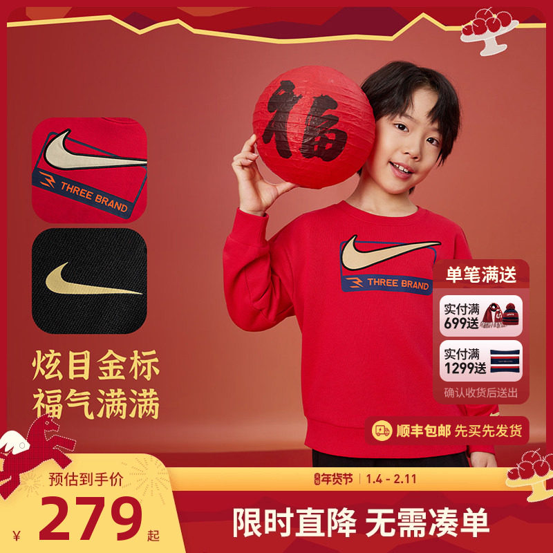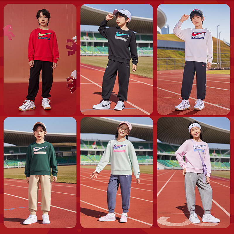 【拜年服】Nike 3brand童装儿童套装男童卫衣长裤女童运动套装春