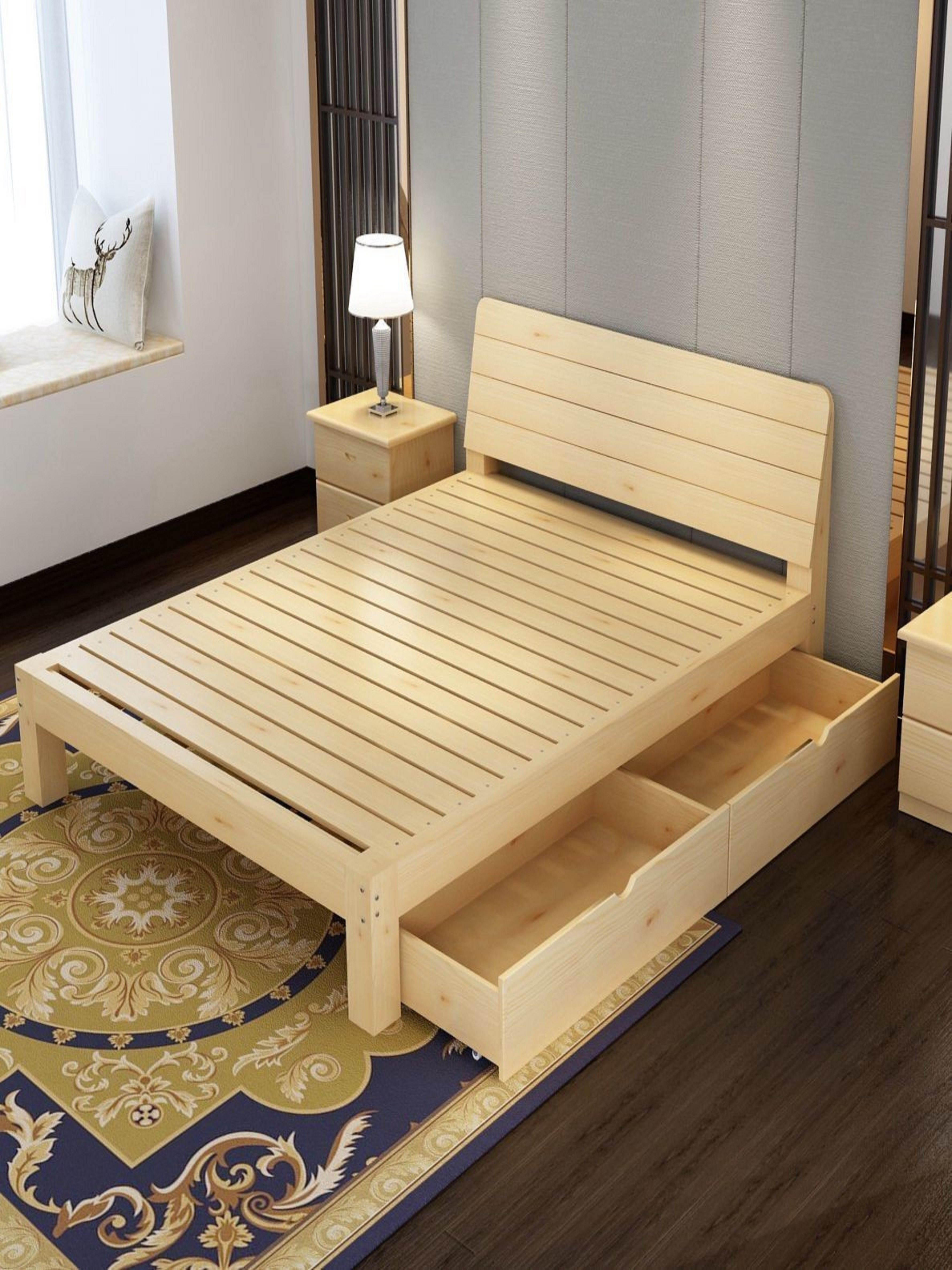 实木床1.5米家用松木双人床1.8主卧1.2m小户型出租屋简易单人床架