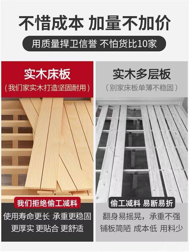 全实木无床头床架榫卯静音悬浮床小户型齐边排骨架床架可定制尺寸