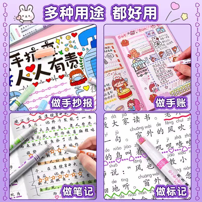 双头荧光笔标记学生套装 荧光笔批发 ins高颜值 网红记号笔笔记笔