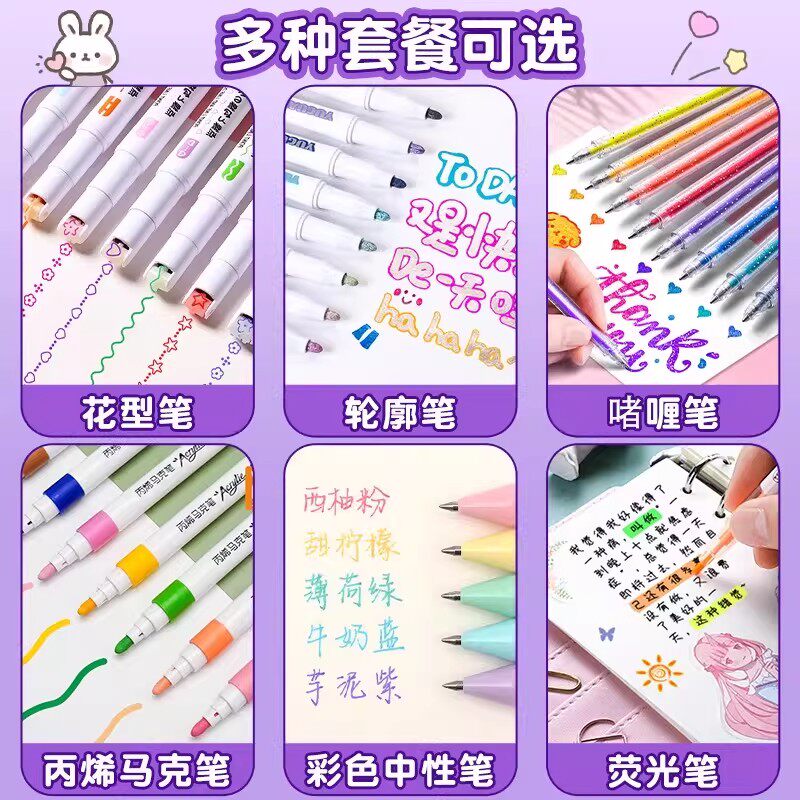 果冻笔3D立体手账笔网红彩色手账专用笔学生用标记笔划重点荧光笔双色轮廓笔闪光啫喱笔指甲果汁笔手抄报画笔