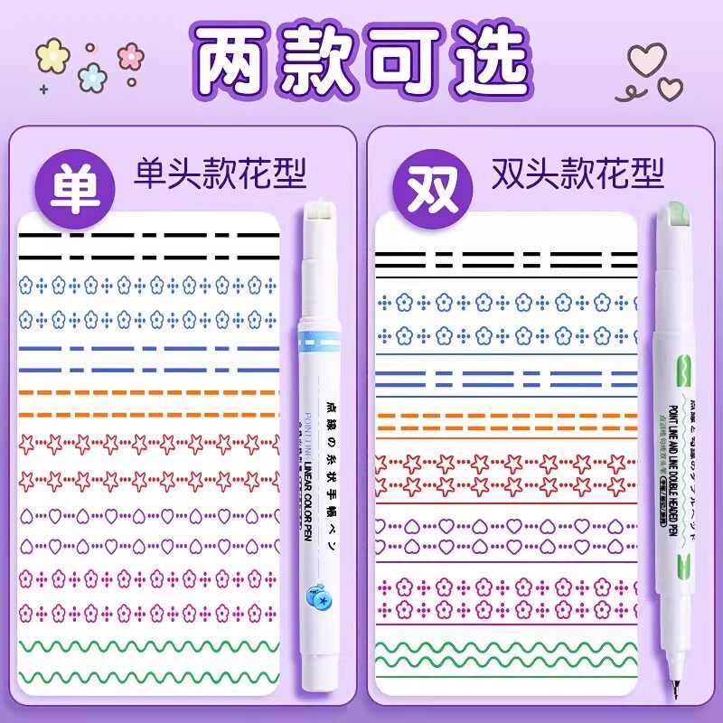 花型轮廓曲线笔手帐图案彩色标记花纹荧光色手账小报儿童勾线花边花色手抄报线条滚轮专用花朵虚线笔记线形