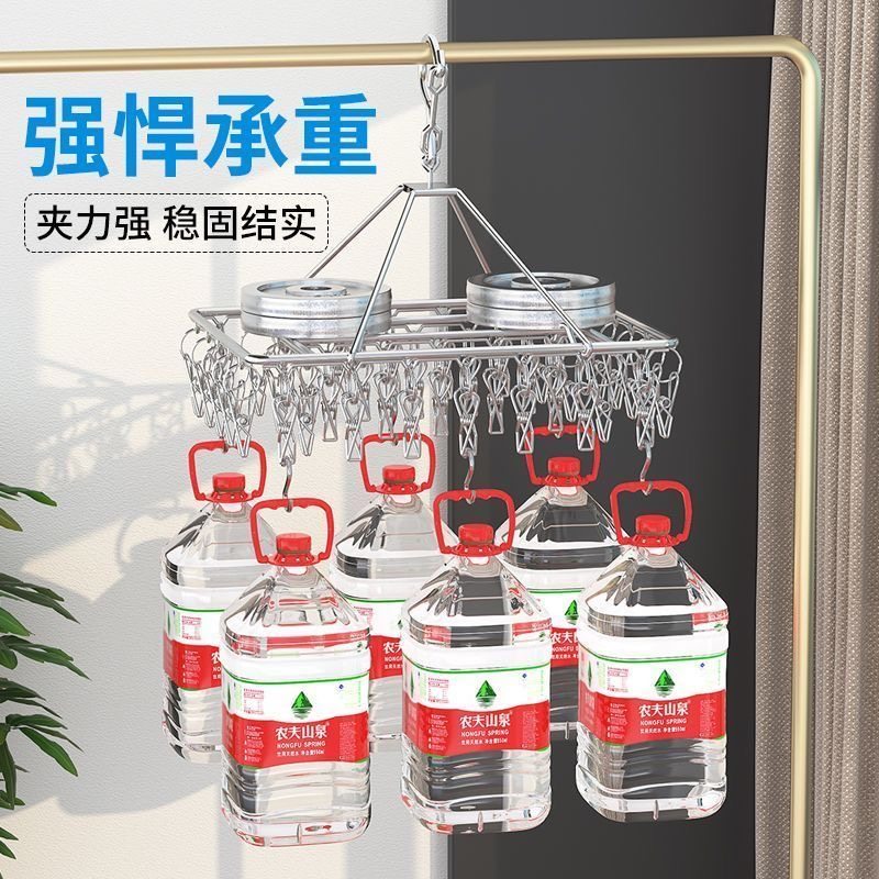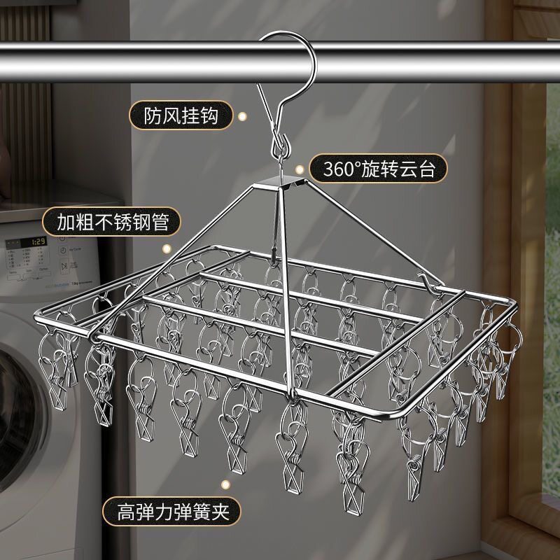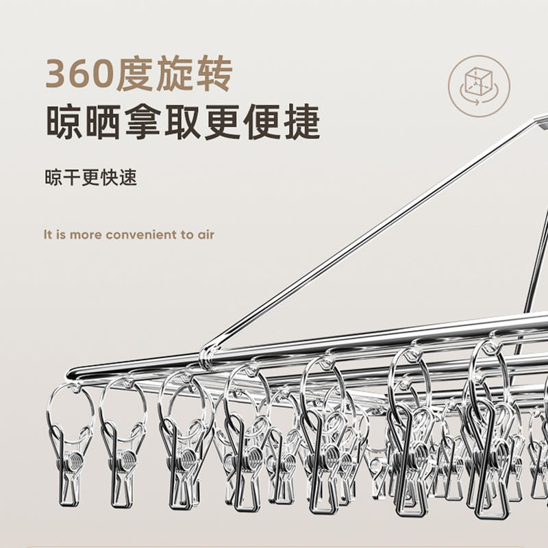 304特粗不锈钢晾衣架多夹子家用防风晾衣夹多功能挂钩衣架晒袜子