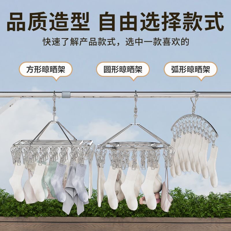 不锈钢袜子夹晾衣架多夹子2025新款阳台晒袜子神器婴儿袜子晾晒架