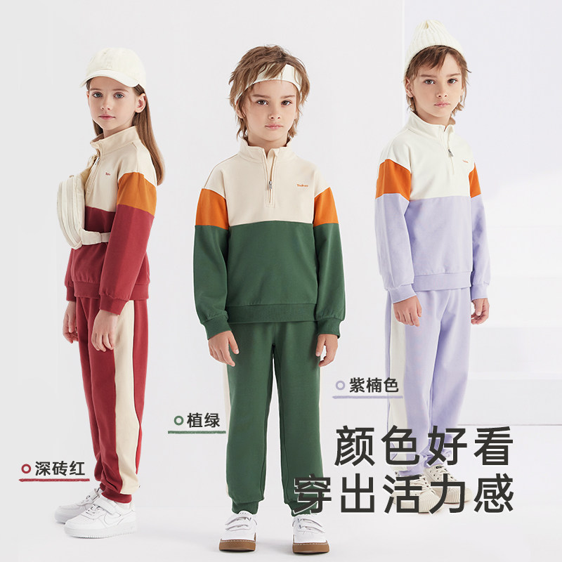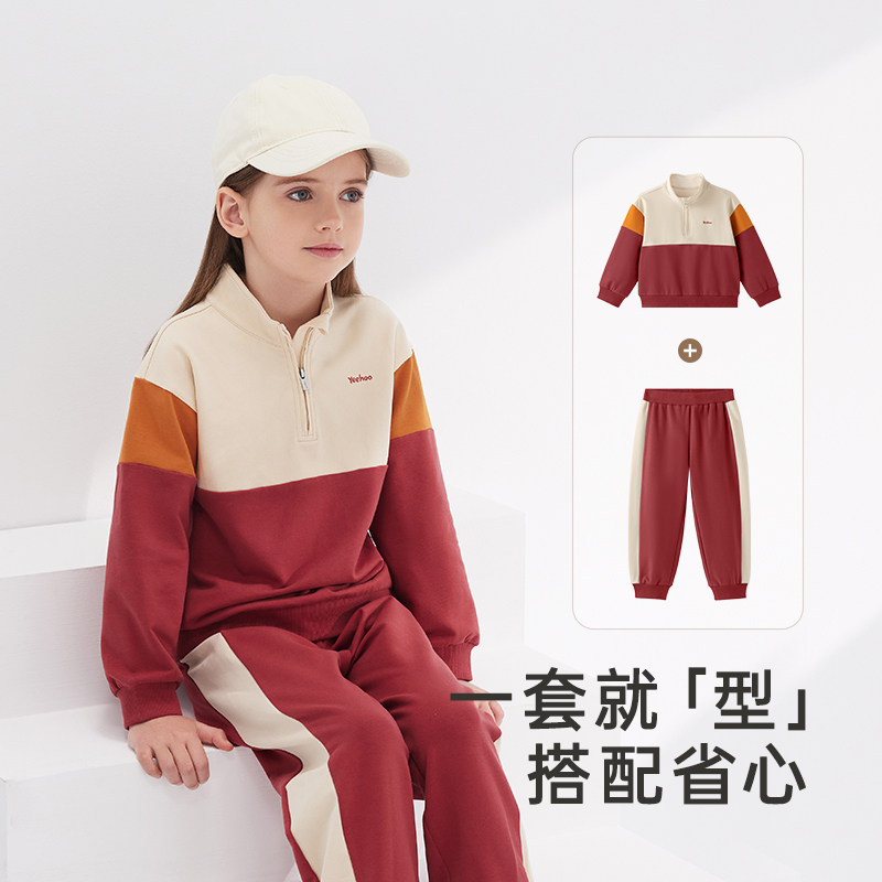 英氏女童春秋套装运动复古学院风休闲儿童卫衣两件套男童宝宝秋季