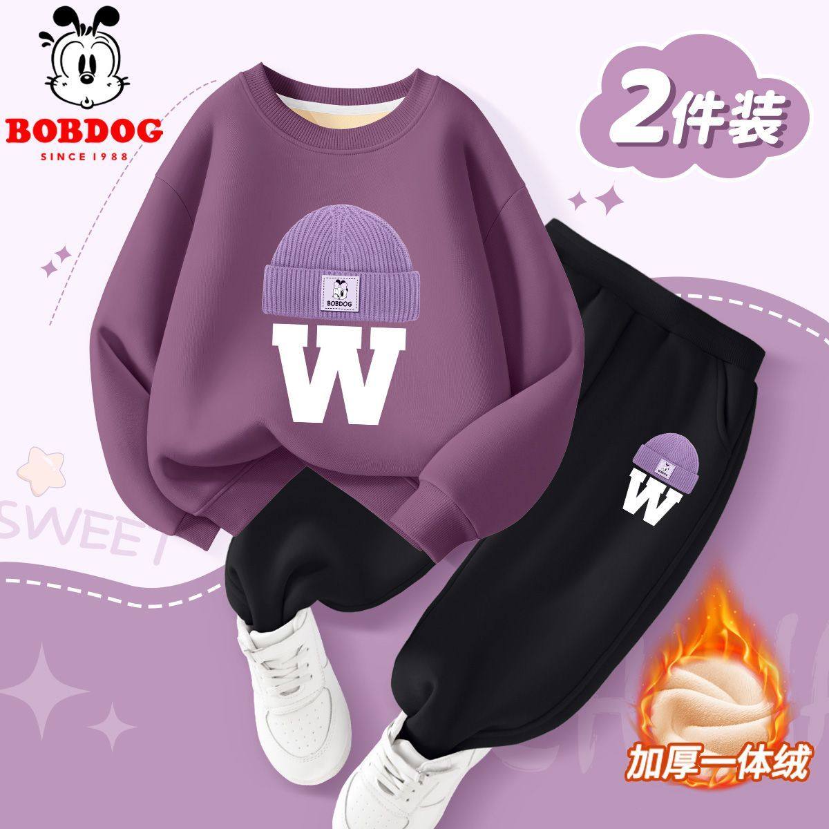 巴布豆女童套装秋冬2025新款儿童加绒卫衣洋气中大童两件套冬装