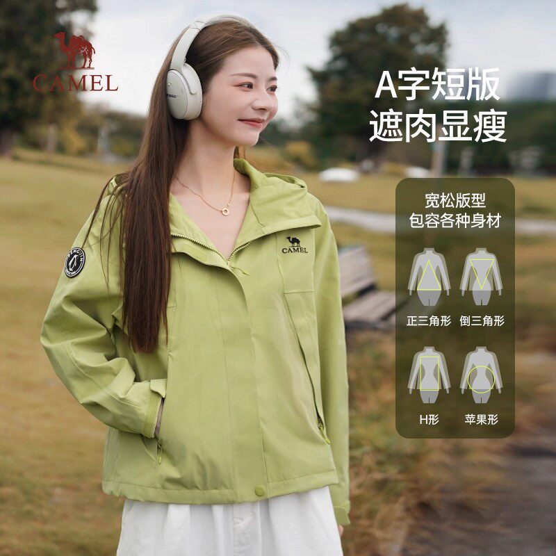 骆驼蛟龙冲锋衣女装2026春秋新款绿色外套户外软壳防风短款夹克