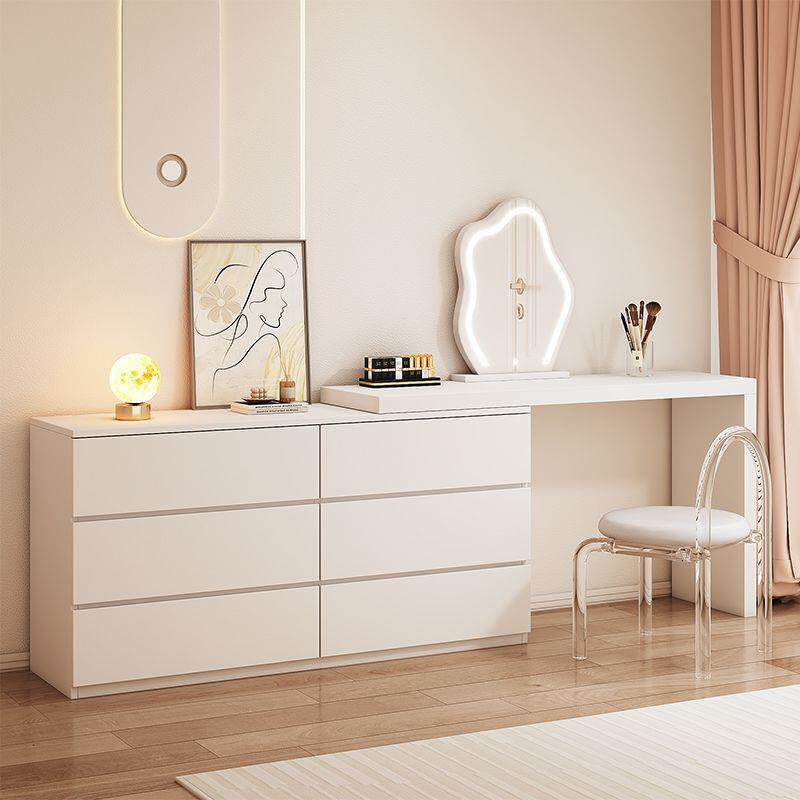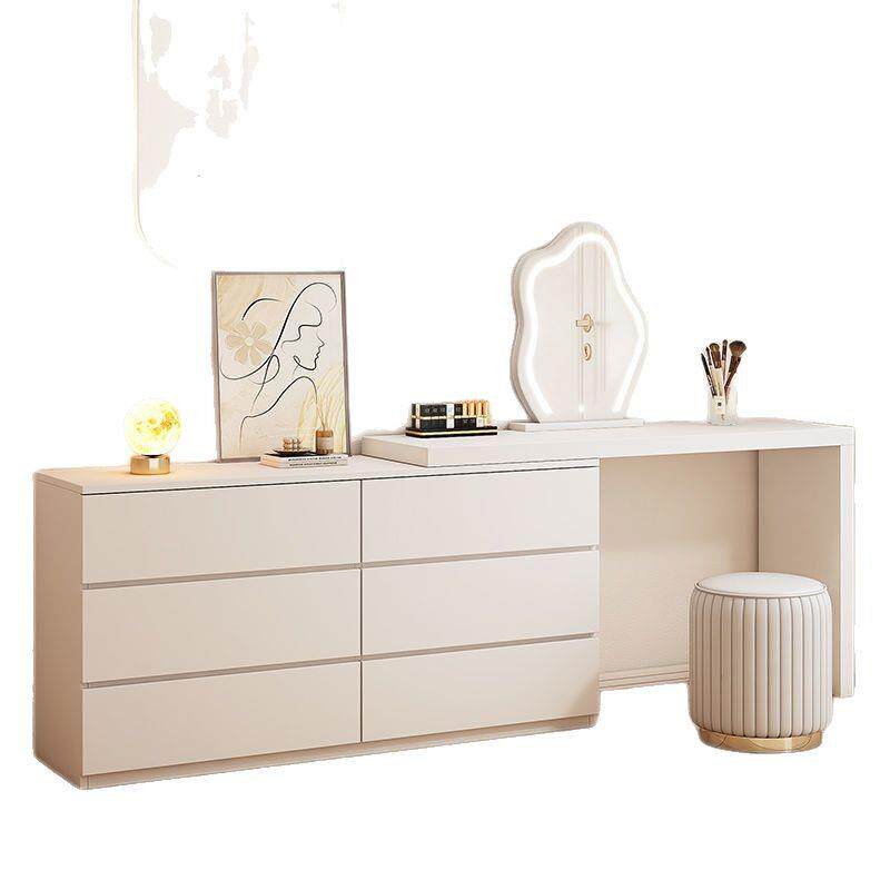 梳妆台卧室简约现代奶油风斗柜梳妆台一体小型化妆桌可伸缩化妆台