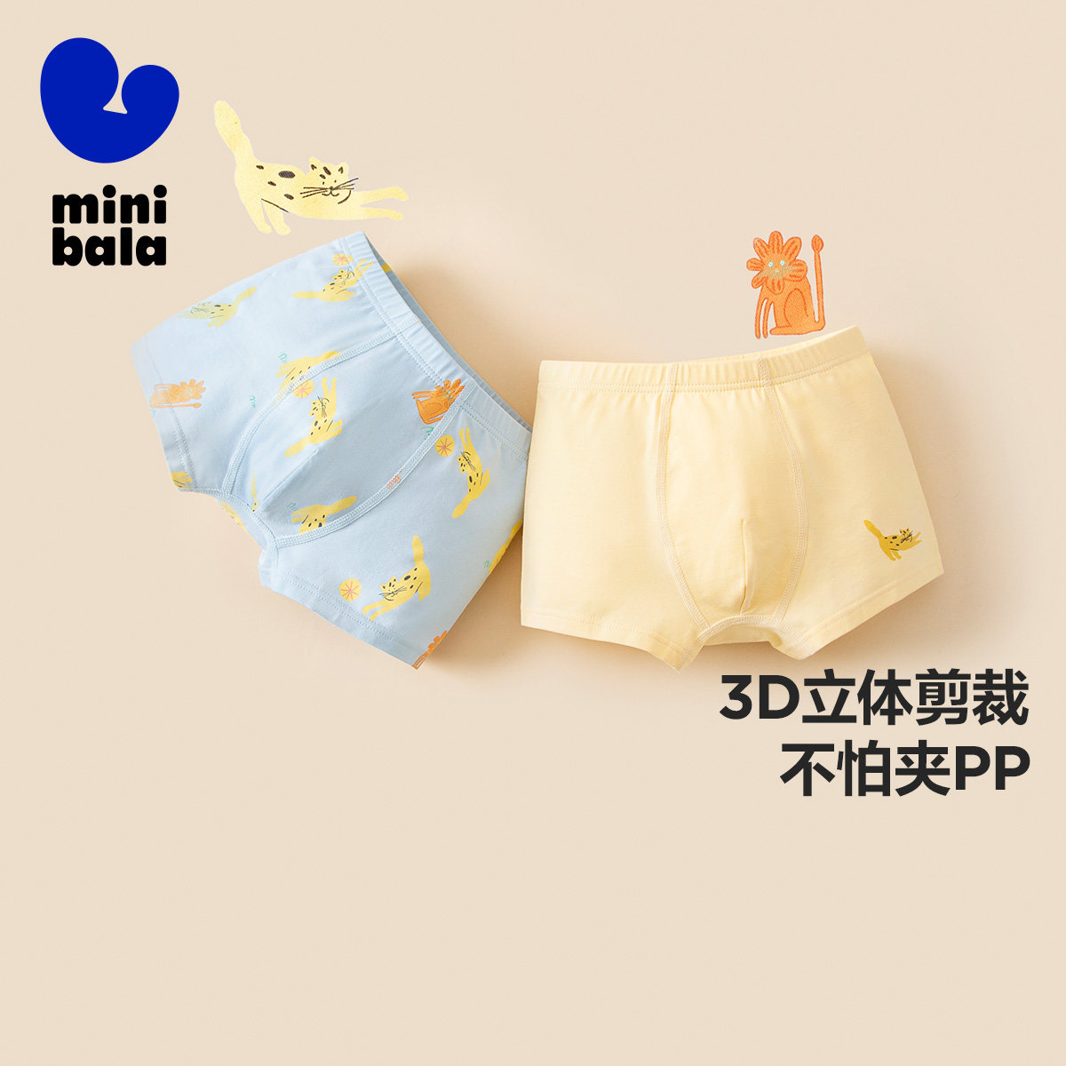 【棉感2条装】迷你巴拉巴拉男女童内裤宝宝三角裤不夹pp平角短裤