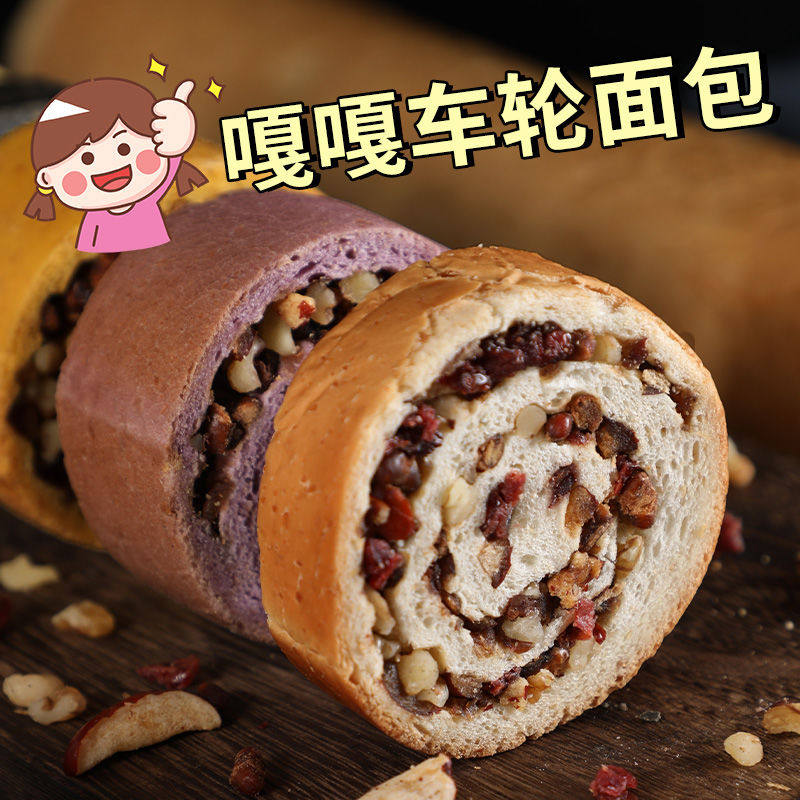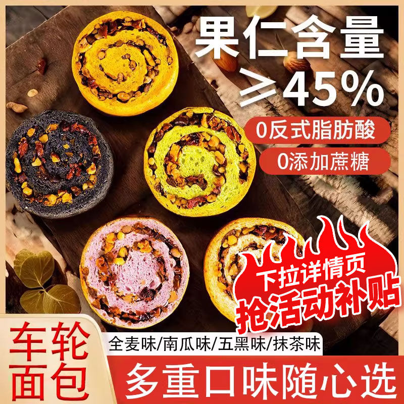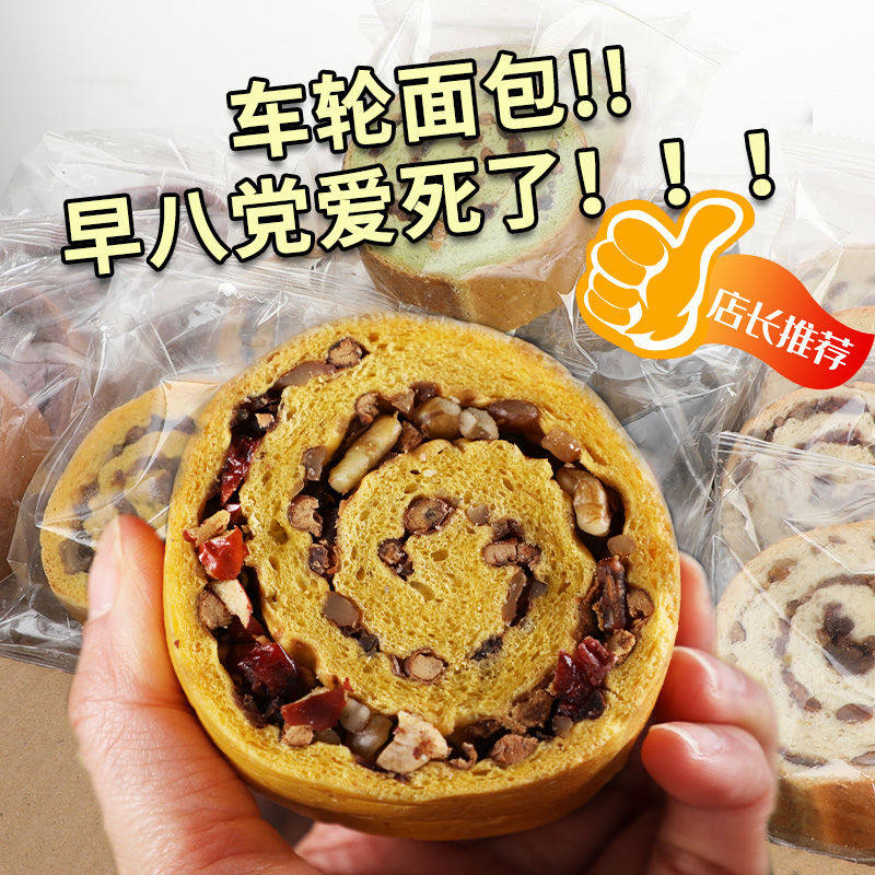 全麦车轮面包坚果粗粮饱腹欧包吐司早餐代餐速食零食健康抹茶南瓜