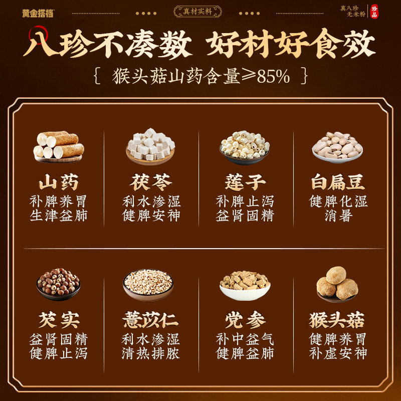 黄金搭档八珍粉官方旗舰店健脾胃山药猴头菇莲子粉养胃早餐代餐粉