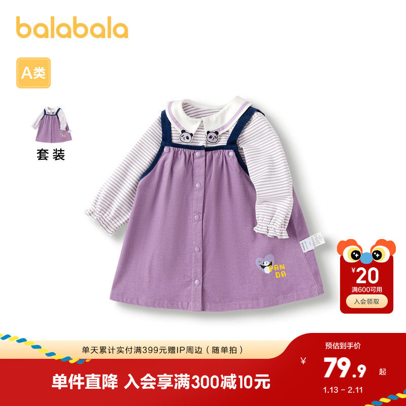 巴拉巴拉宝宝秋装女童长袖套装儿童衣服背带裙两件套可爱活力甜美