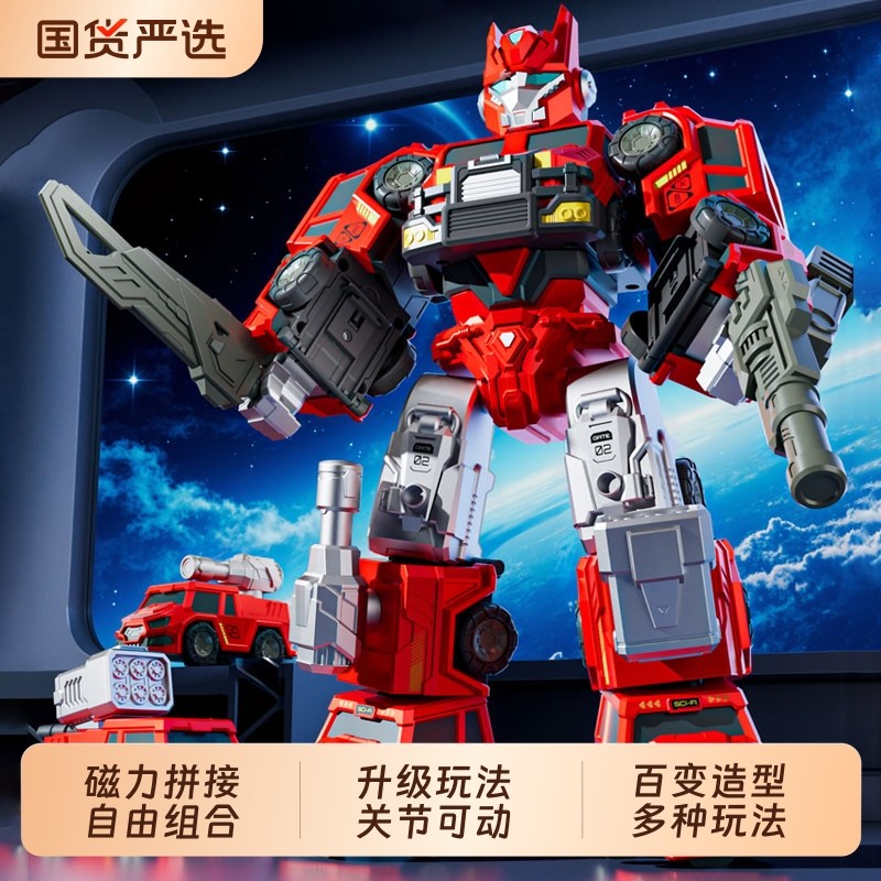 磁力拼接变形玩具儿童男孩子生日礼物3益智6拼装消防车金刚机器人