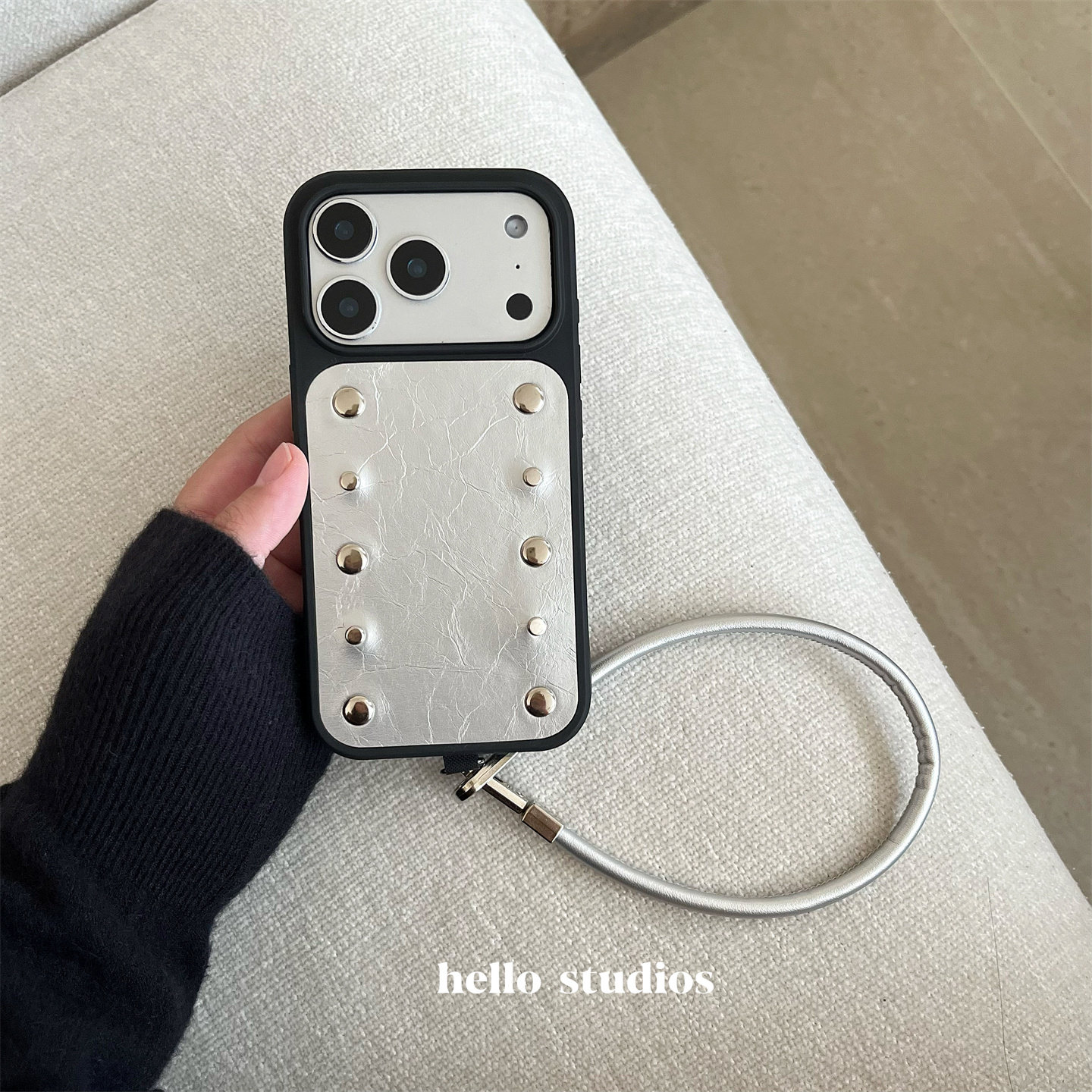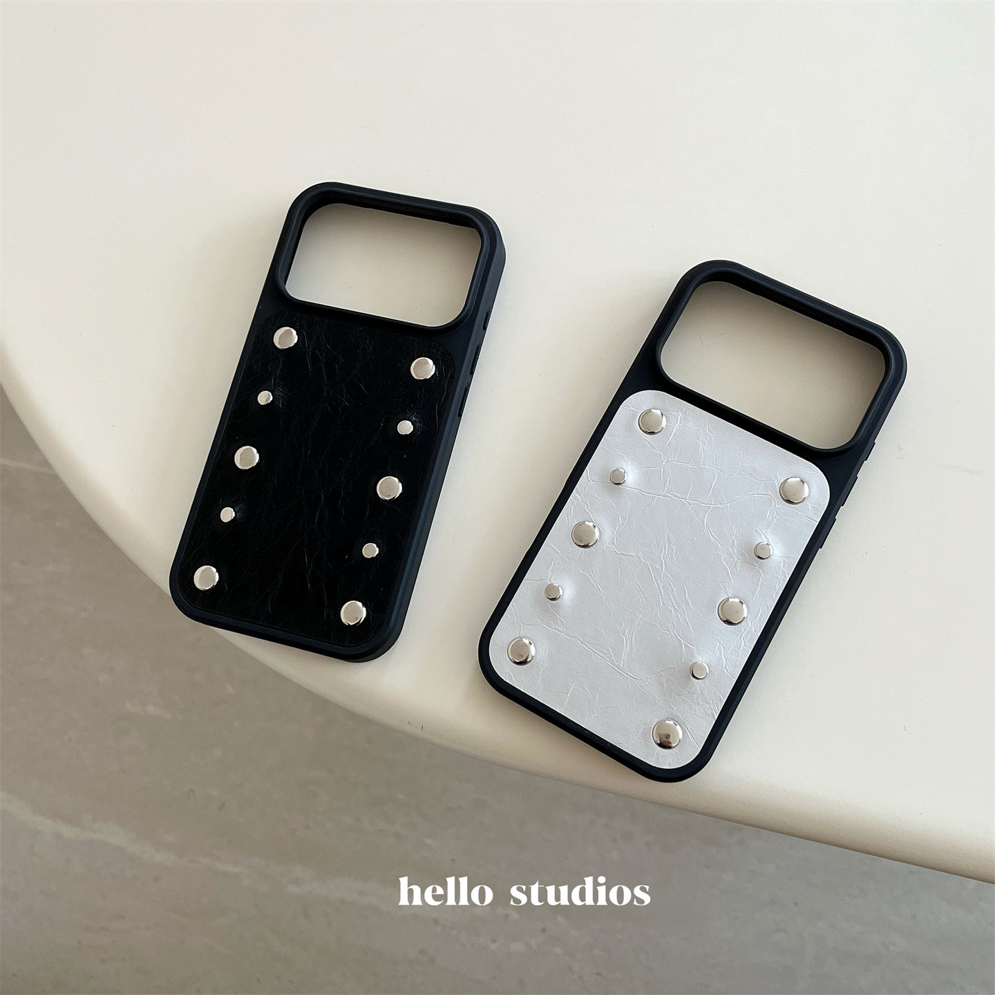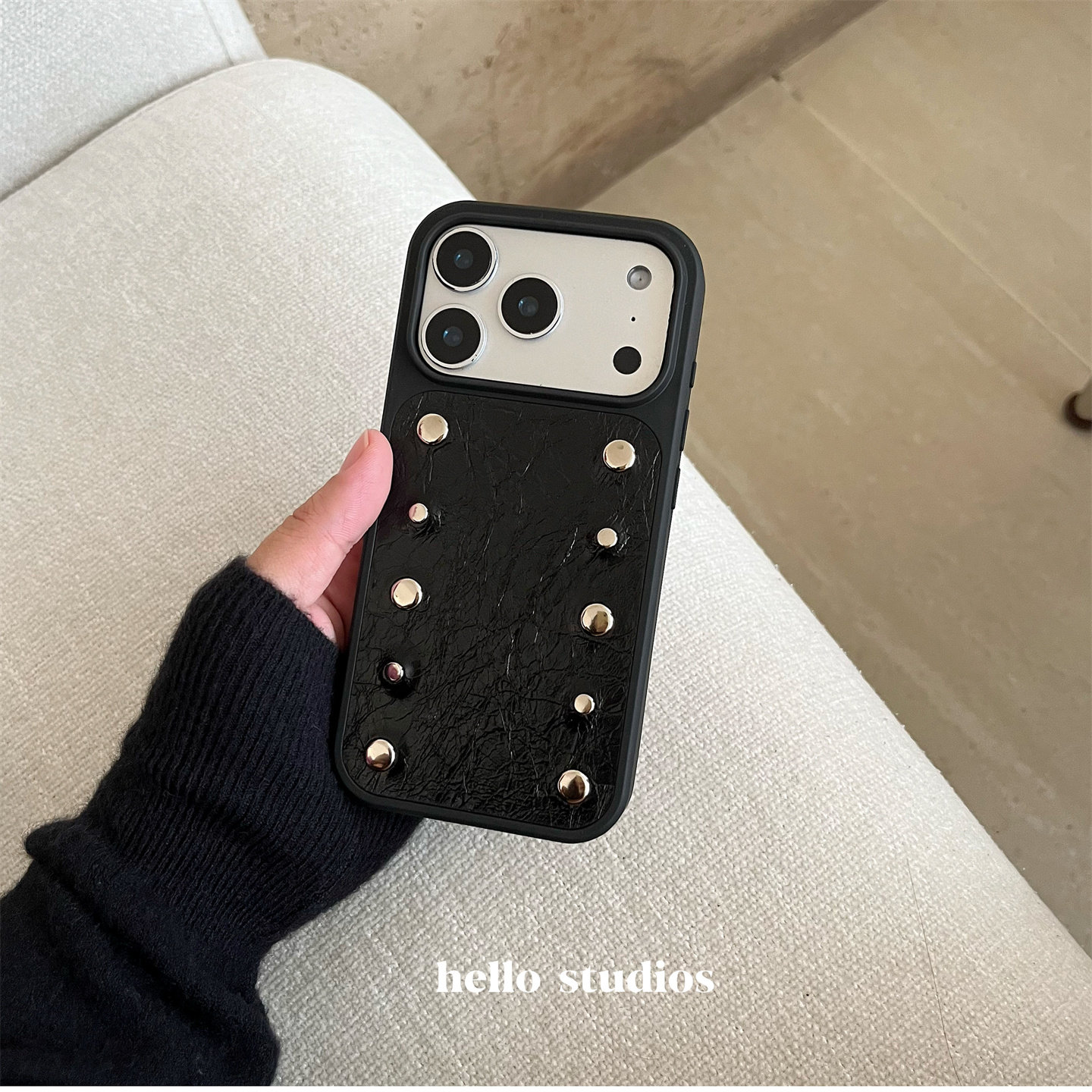 hello studios高级感小众时髦铆钉手机壳适用苹果17promax新款iPhone16PRo/14pro皮壳15/13
