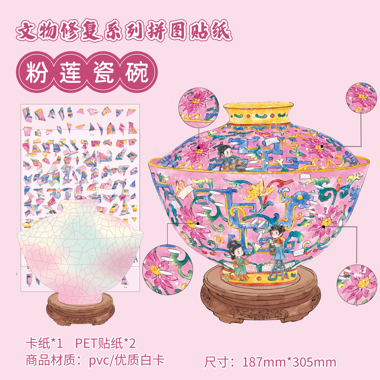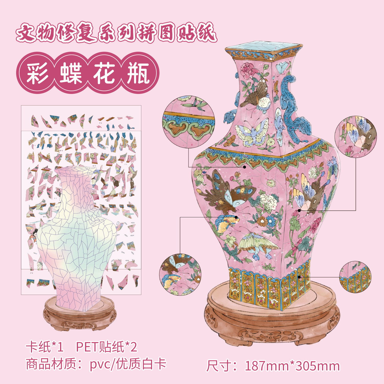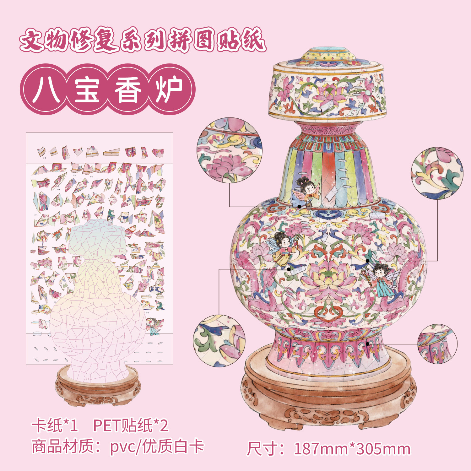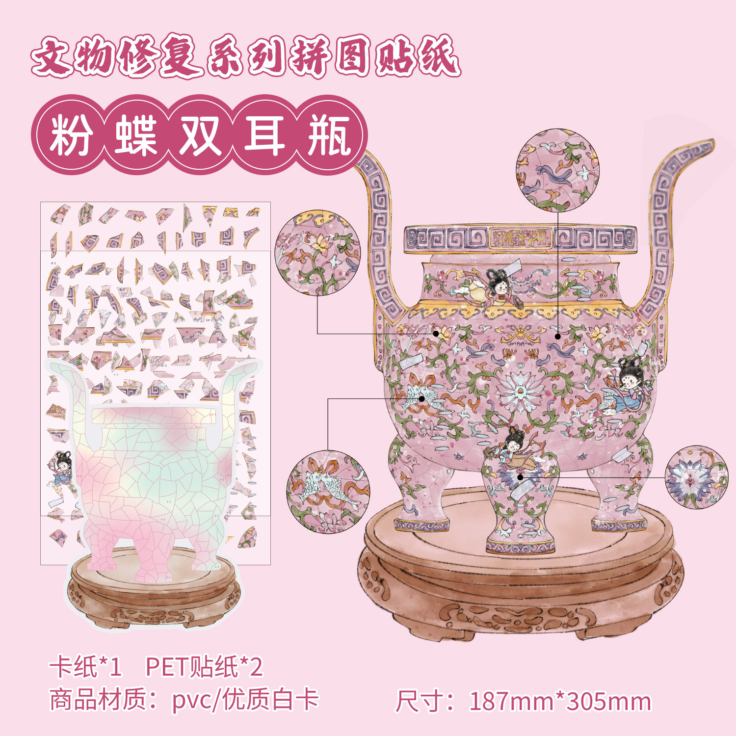 文物修复系列造景贴纸大号八宝香炉粉蝶双耳瓶古董瓷器旧物修复师微缩场景3D立体小屋拼图贴画手账diy手工