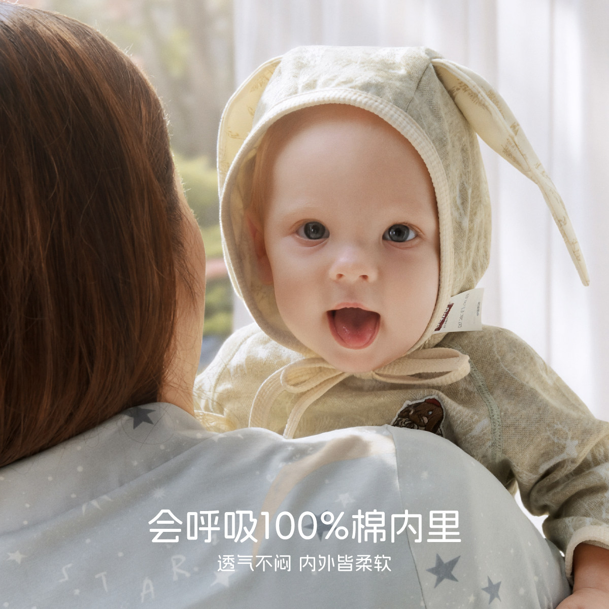 十月结晶粒粒阳光婴儿帽子a类0到3个月新生小月龄宝宝护囟门胎帽
