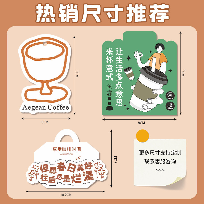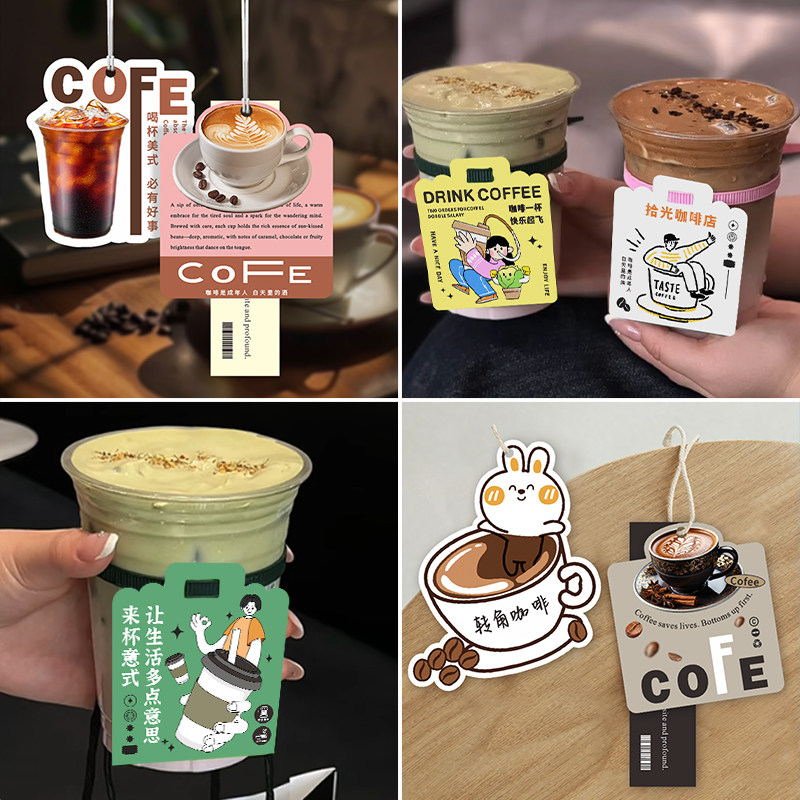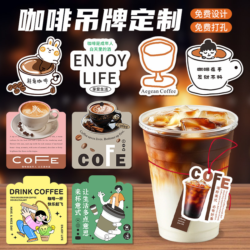 咖啡吊牌定制饮品店创意一次性杯子logo吊卡设计外卖果汁饮料打包纸袋装饰挂牌异形风味介绍说明挂签卡片印刷