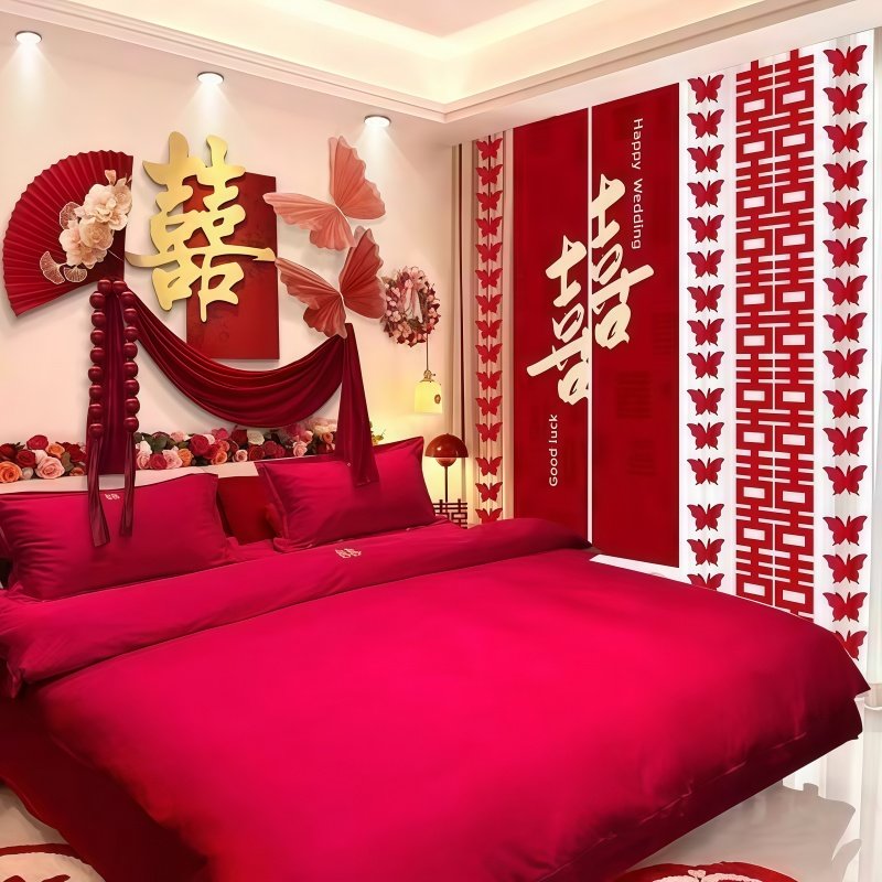 婚房布置套装婚礼结婚男女方闺房卧室床头装饰酒店房间氛围拉花