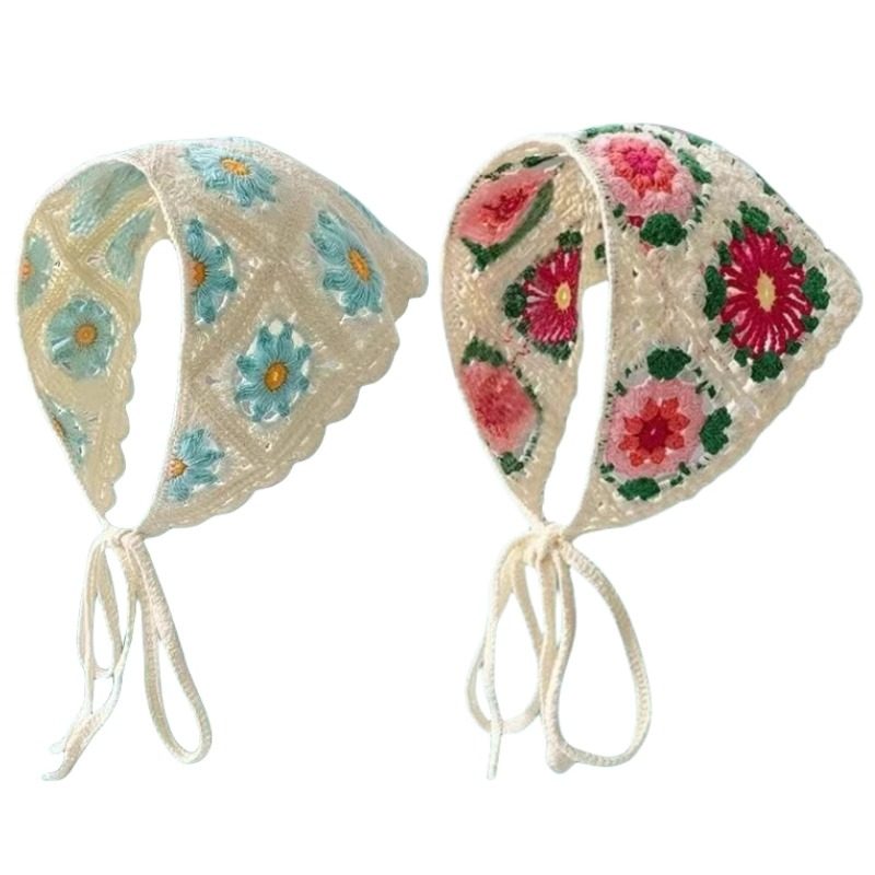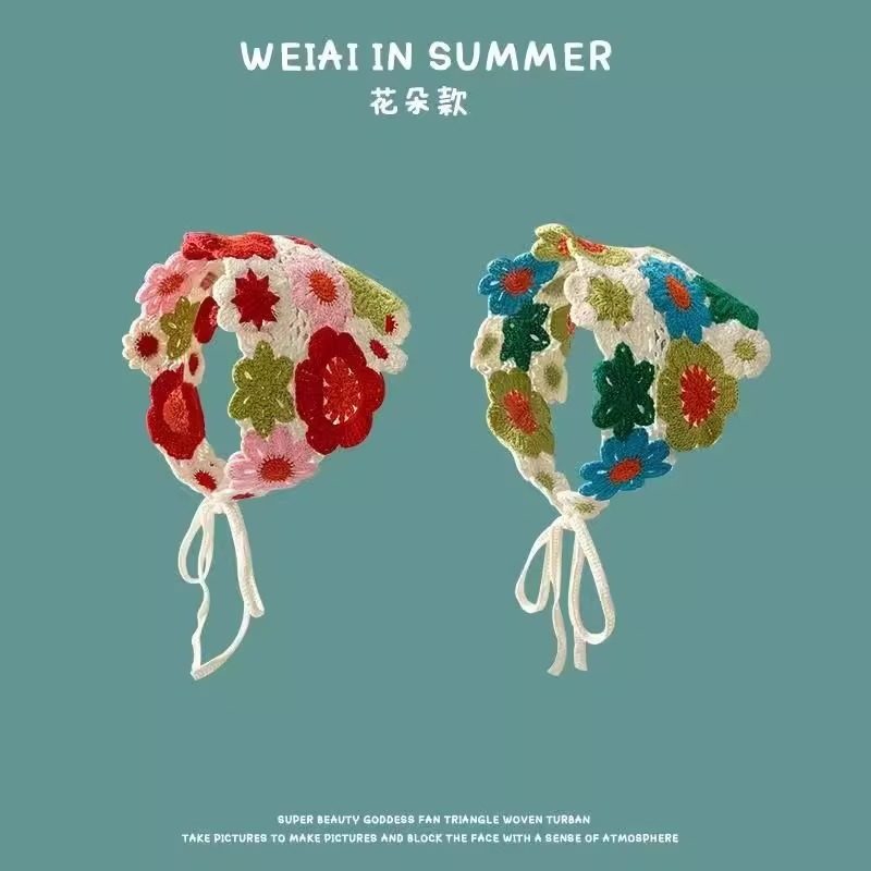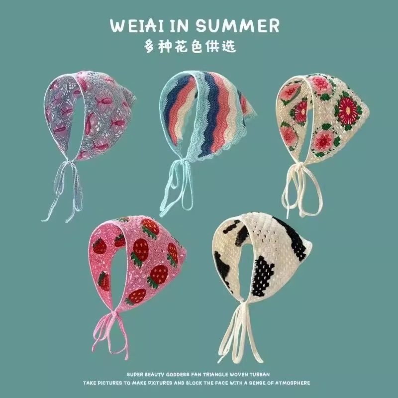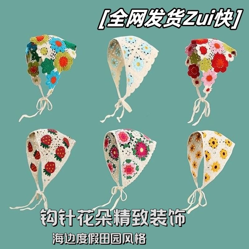 赵昭仪同款发巾头巾田园风三角巾针织法式海边多巴胺女包头碎花CC