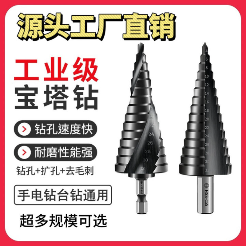 宝塔型钻头高硬度不锈钢304专用打孔开孔扩孔器转头宝塔钻钻孔