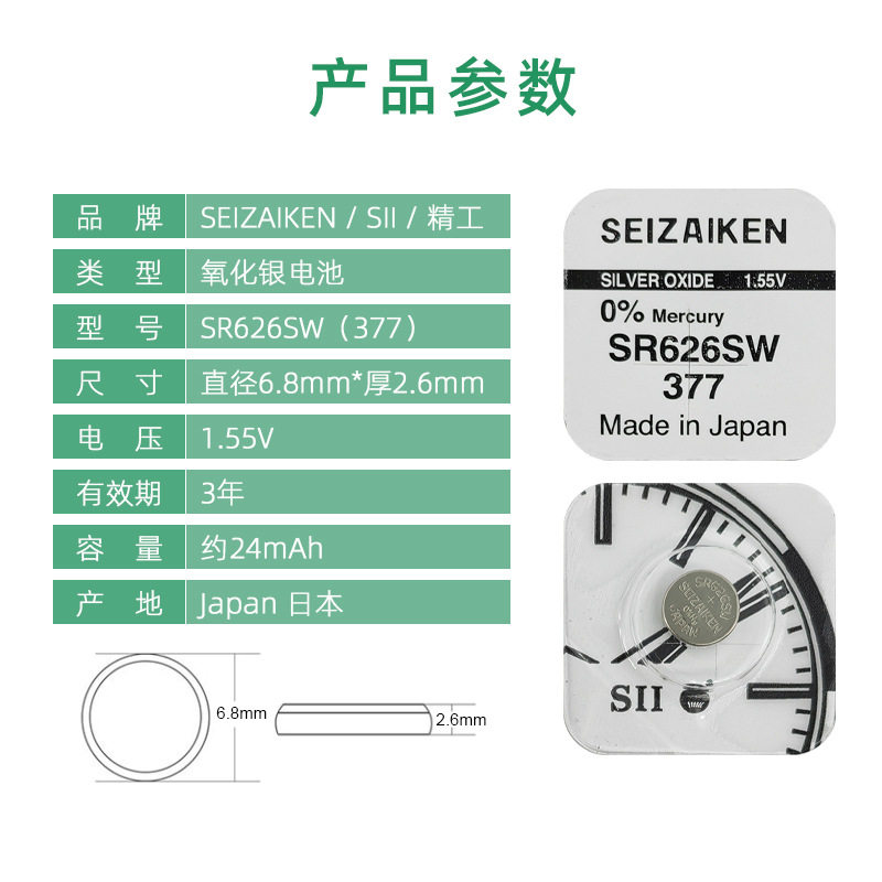 原装日本精工377/SR626SW 纽扣电池无汞氧化银手表电池石英表电子