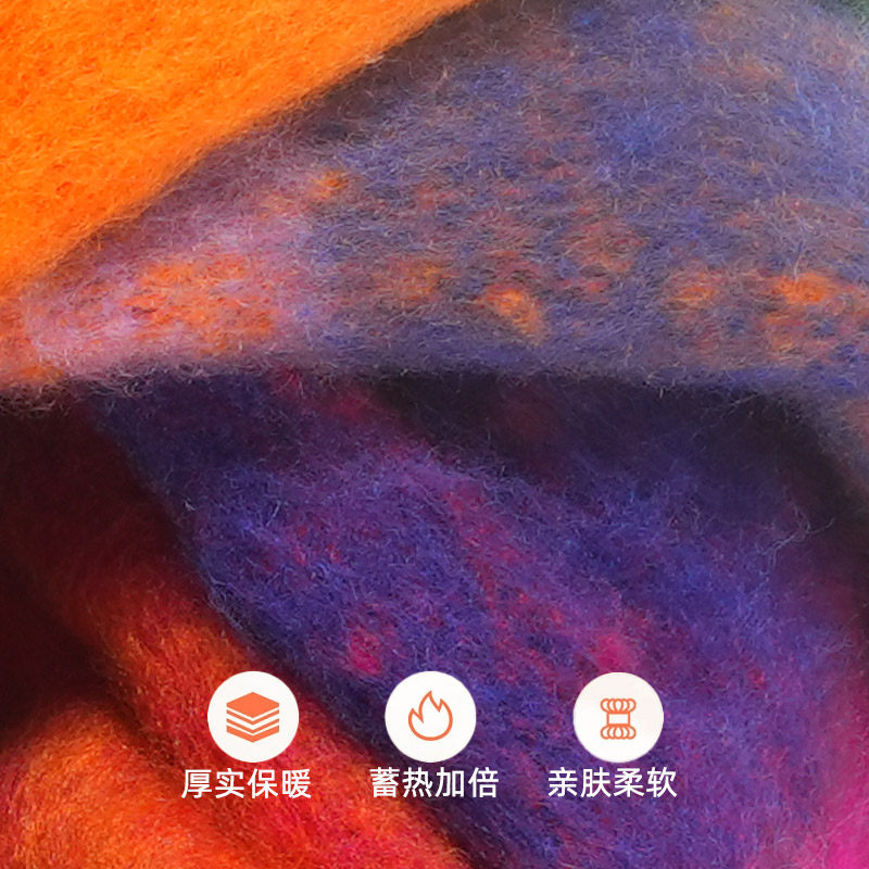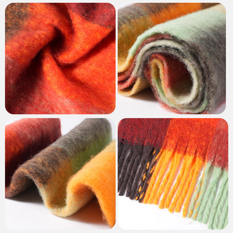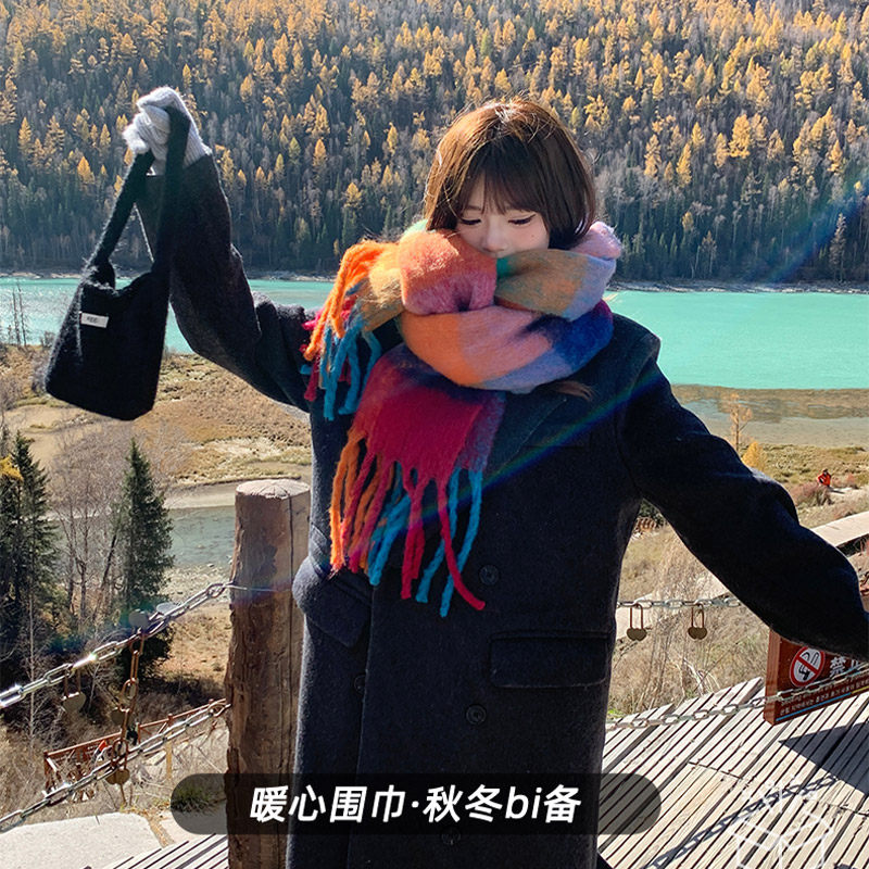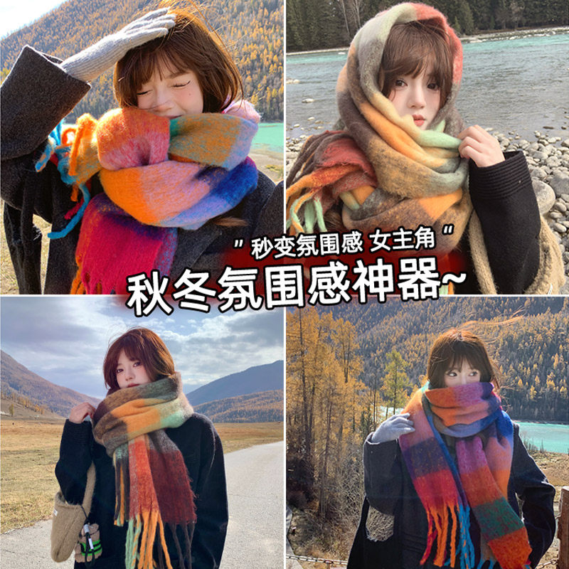 彩色格子多巴胺围巾川西穿搭橙色女秋冬季彩虹高级氛围感围脖披肩