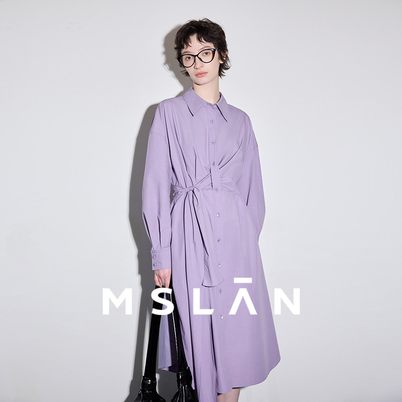 绑带衬衫裙|MSLAN商场同款春季通勤不规则棉质连衣裙MGBT323