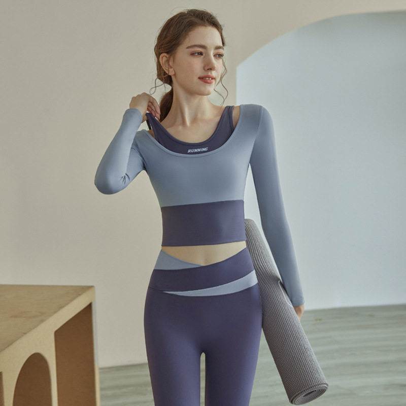 VfU 带胸垫瑜伽长袖女免穿内衣速干T恤跑步健身服上衣修身秋冬